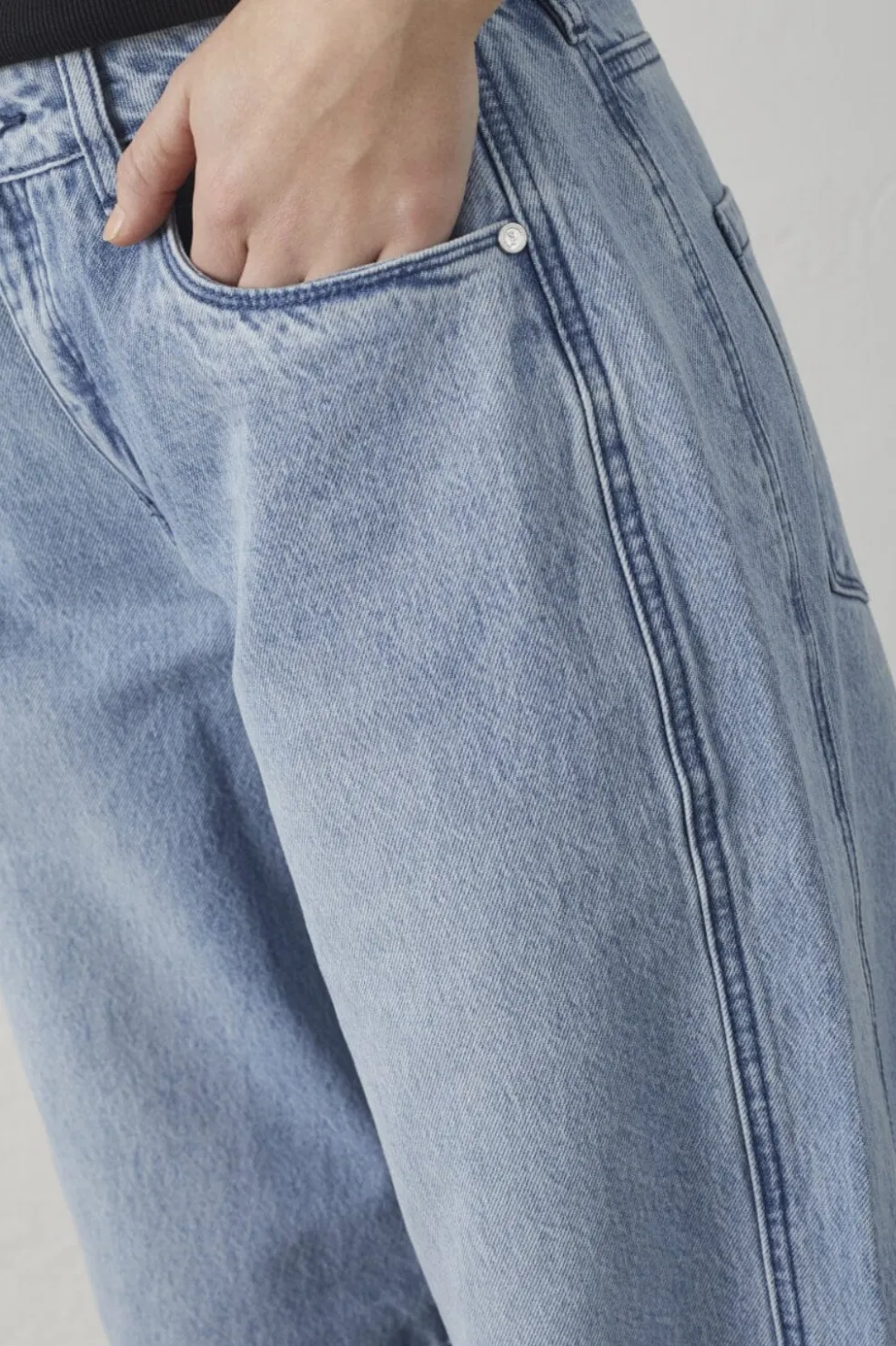 Lyseblå jeans fra Sisters Point med høj talje og loose fit. De er lavet i denim med lyse syninger og har både for- og baglommer.