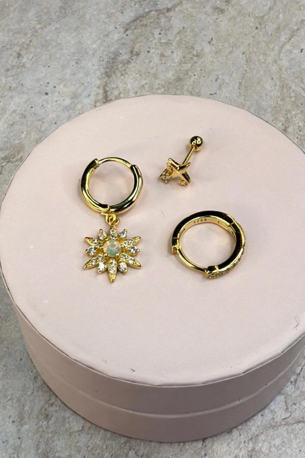 Øreringe fra Molly&My Jewellery med forgyldt finish. Sættet indeholder to par med stjerneformede vedhæng og indlagte sten.