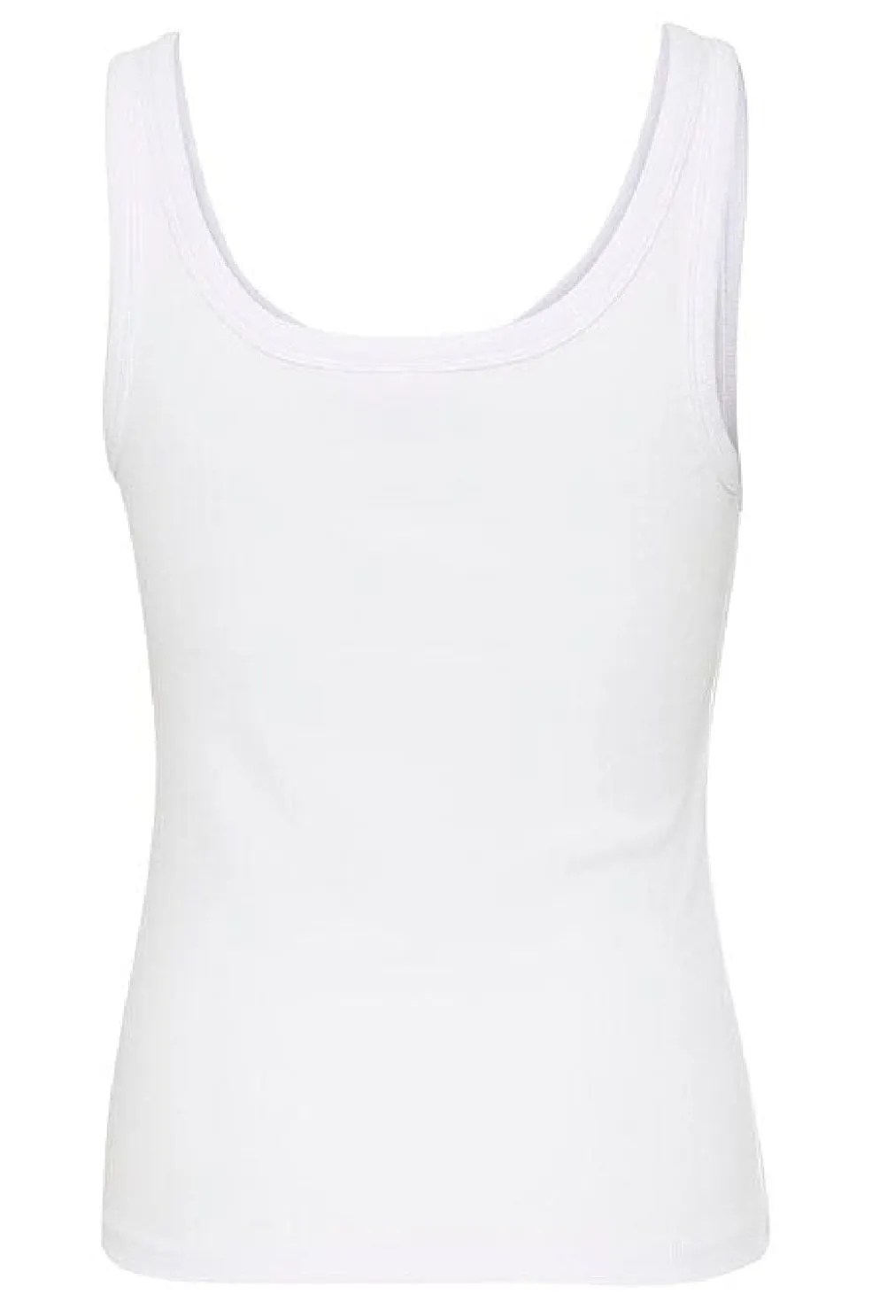 Hvid ærmeløs top fra Gestuz med et diskret sort logo på brystet. Den tætsiddende top har en rund halsudskæring og er lavet af en blød bomuldsblanding.