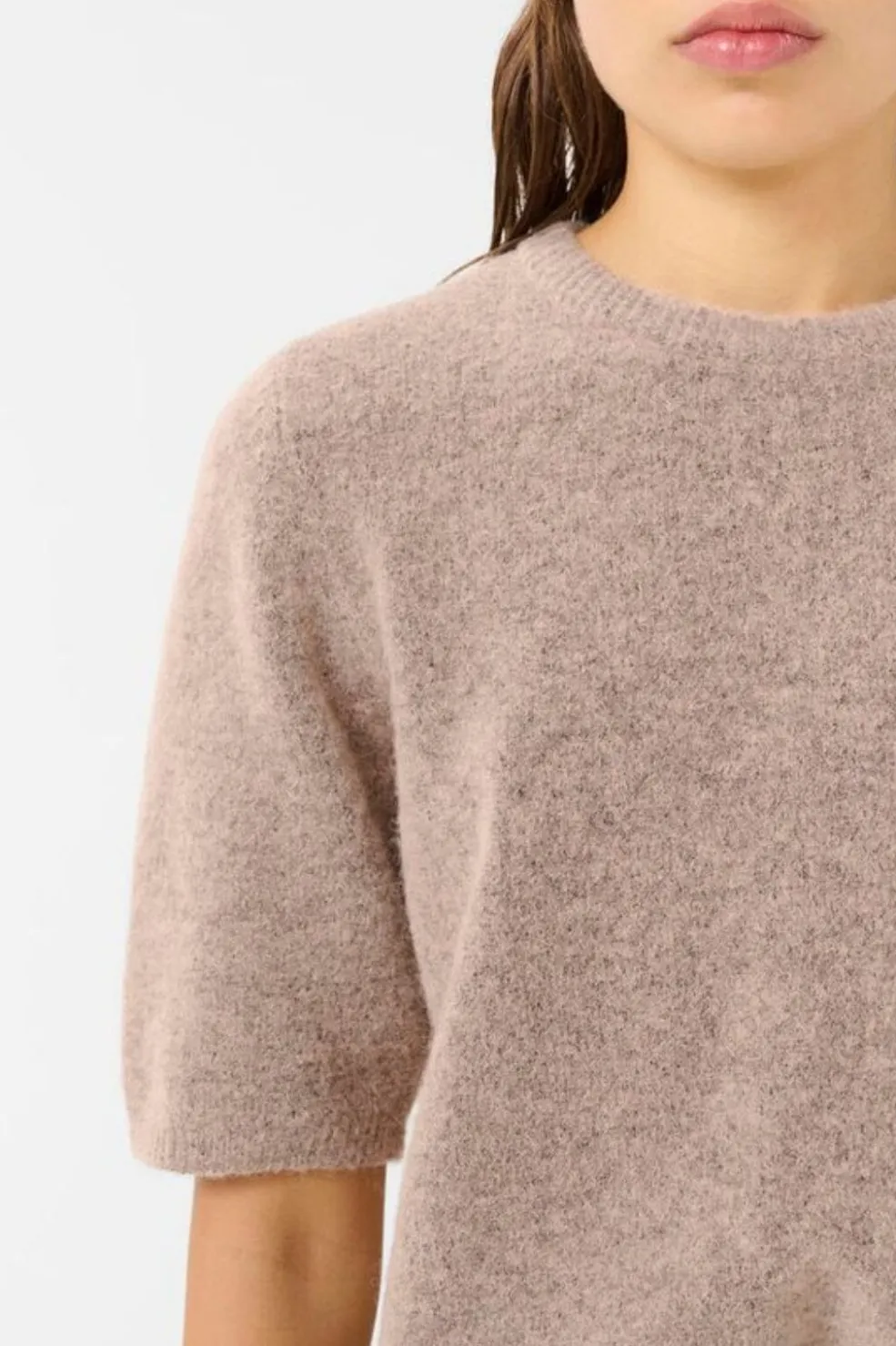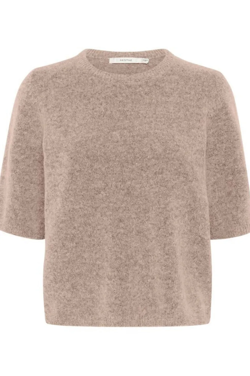 Kortærmet sweater fra Gestuz i rose dust melange. Den har en rund halsudskæring og en regular fit. Sweateren er lavet af en blød blanding af uld og andre materialer.
