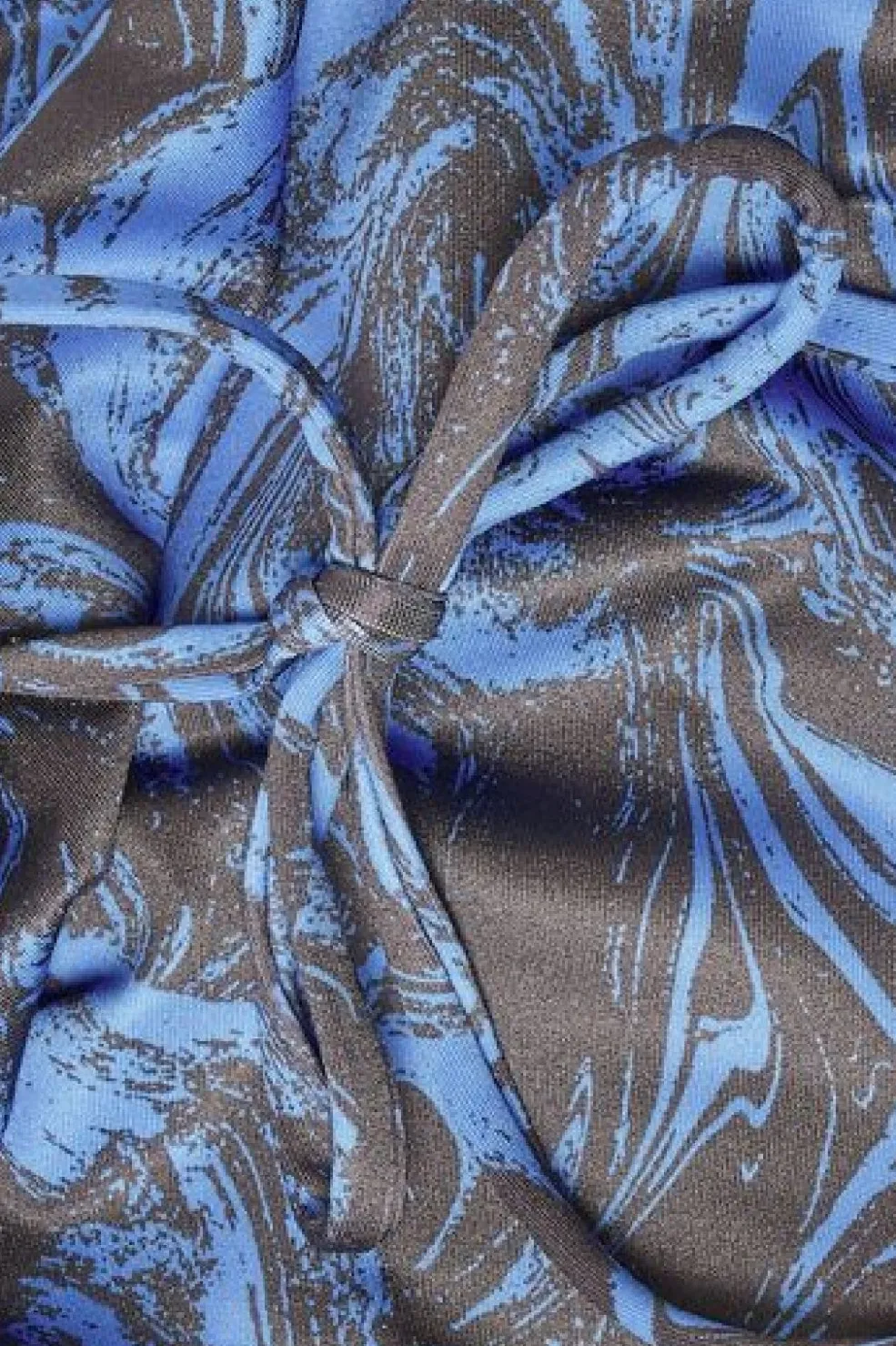Bikiniunderdel fra Gestuz med blåt og sort svulmønster. Den har sløjfer i siderne og kommer i en normal pasform med god bevægelsesfrihed.