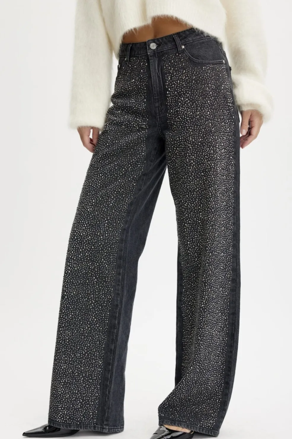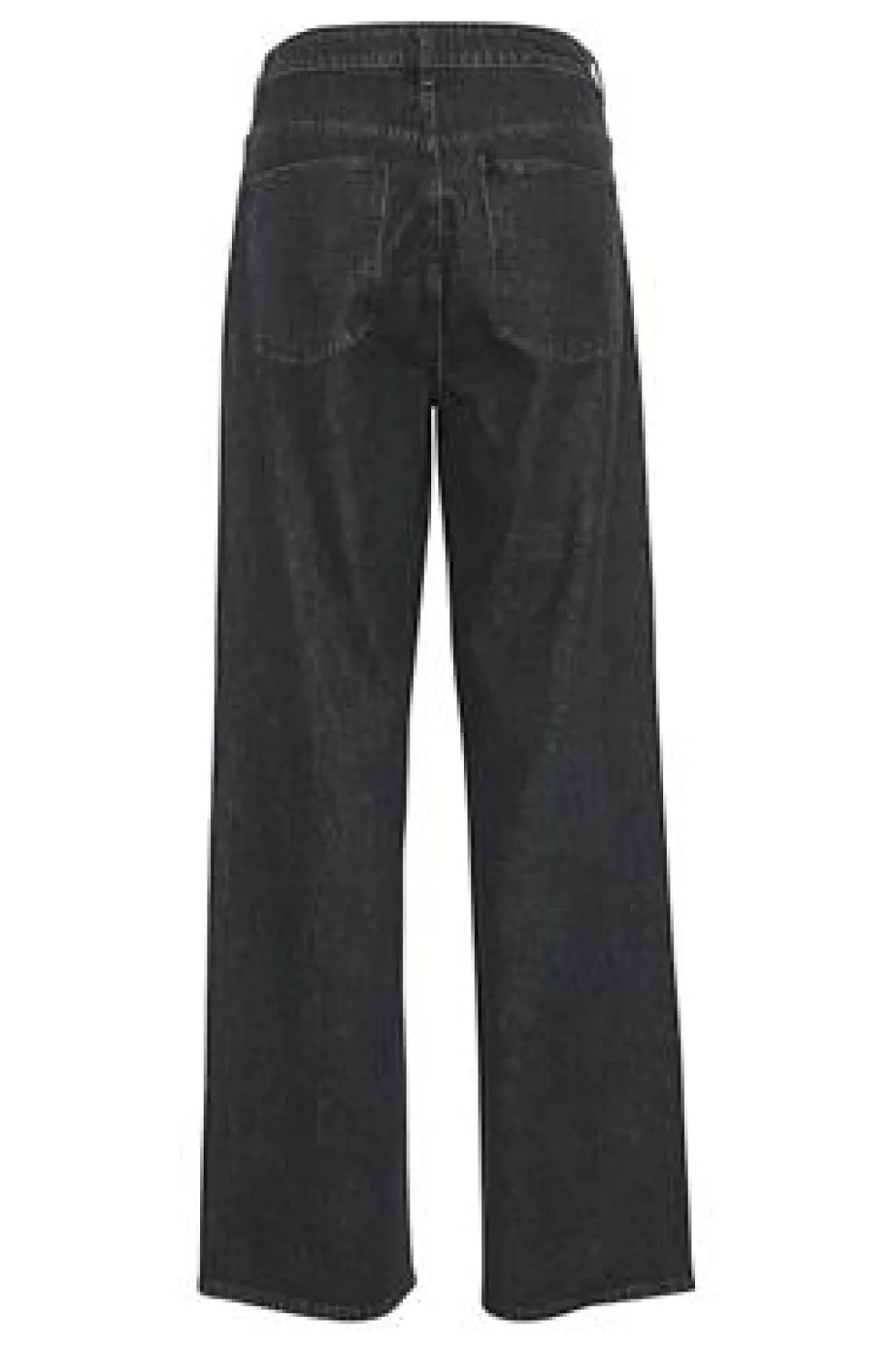 Mørkegrå jeans fra Gestuz med pailletter og printdetaljer på forsiden. Jeansene har en regular fit og ankellængde, hvilket giver en god og afslappet pasform.