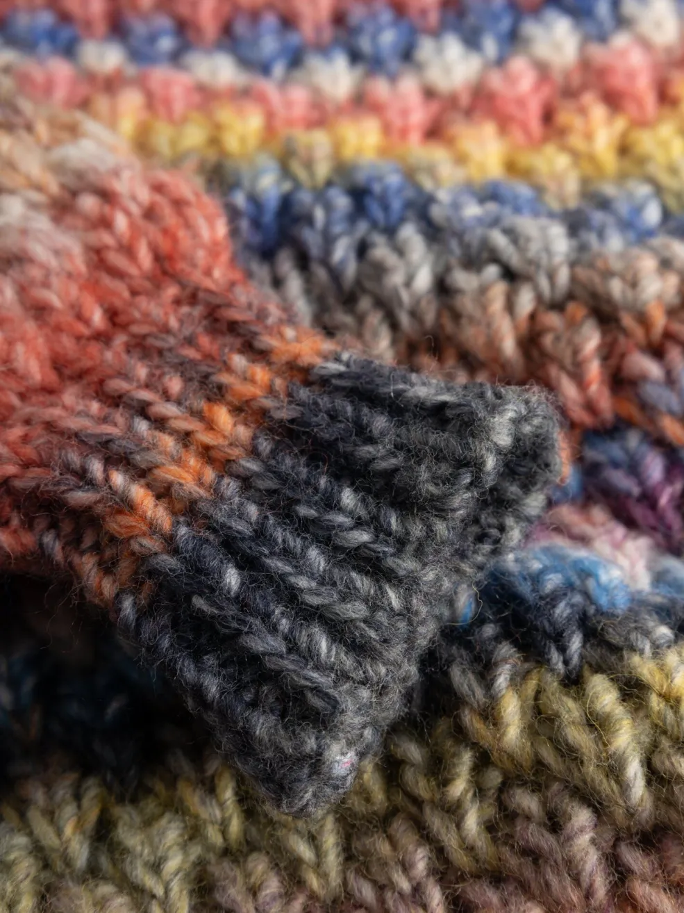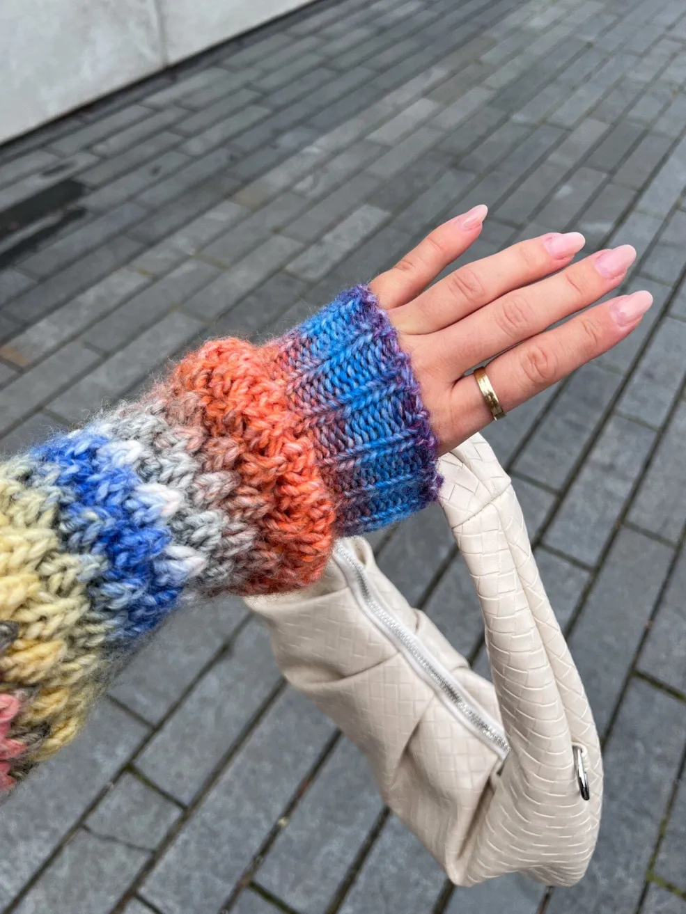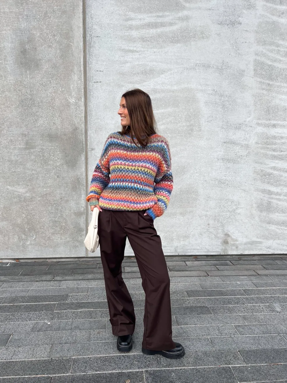 Super lækker striktrøje med store ærmer fra Noella. Vi kan ikke garantere at du modtager nøjagtig den bluse som er vist på billedet, da hver trøje er unik i sin farvesammensætning.