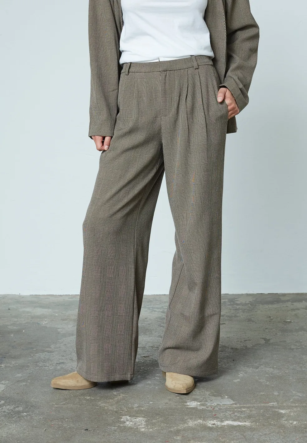 Ternede bukser fra Sisters Point med et klassisk, ternet mønster. Bukserne har en løs pasform og gulvlængde, og de passer til både afslappede og formelle lejligheder.