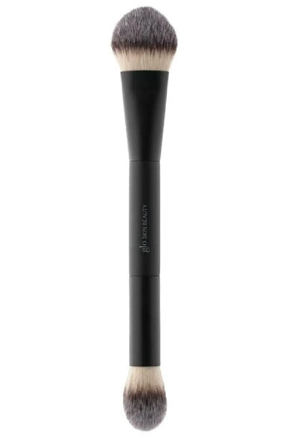 Dobbeltsidet makeupbørste fra Glo Skin Beauty med bløde børstehår. Den ene ende er til konturering, mens den anden ende er til highlighter. Børsten har et ergonomisk design.