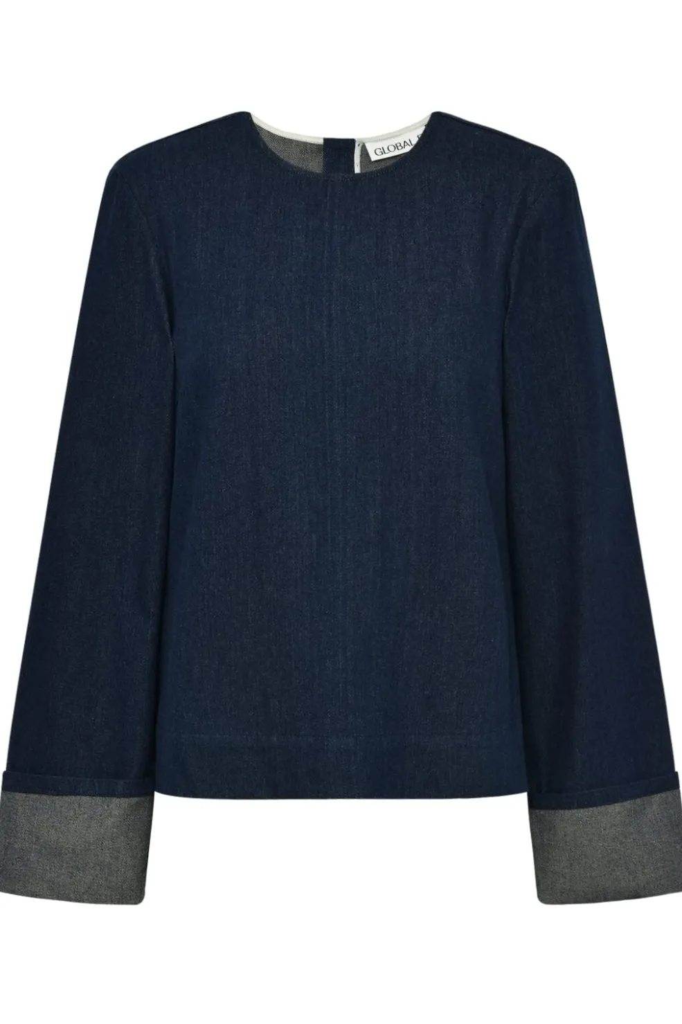 Denimtop fra Global Funk i mørk uvaske denim. Toppen har en rund halsudskæring og lynlås i nakken. Den har lange ærmer og er fremstillet i ren bomuld.