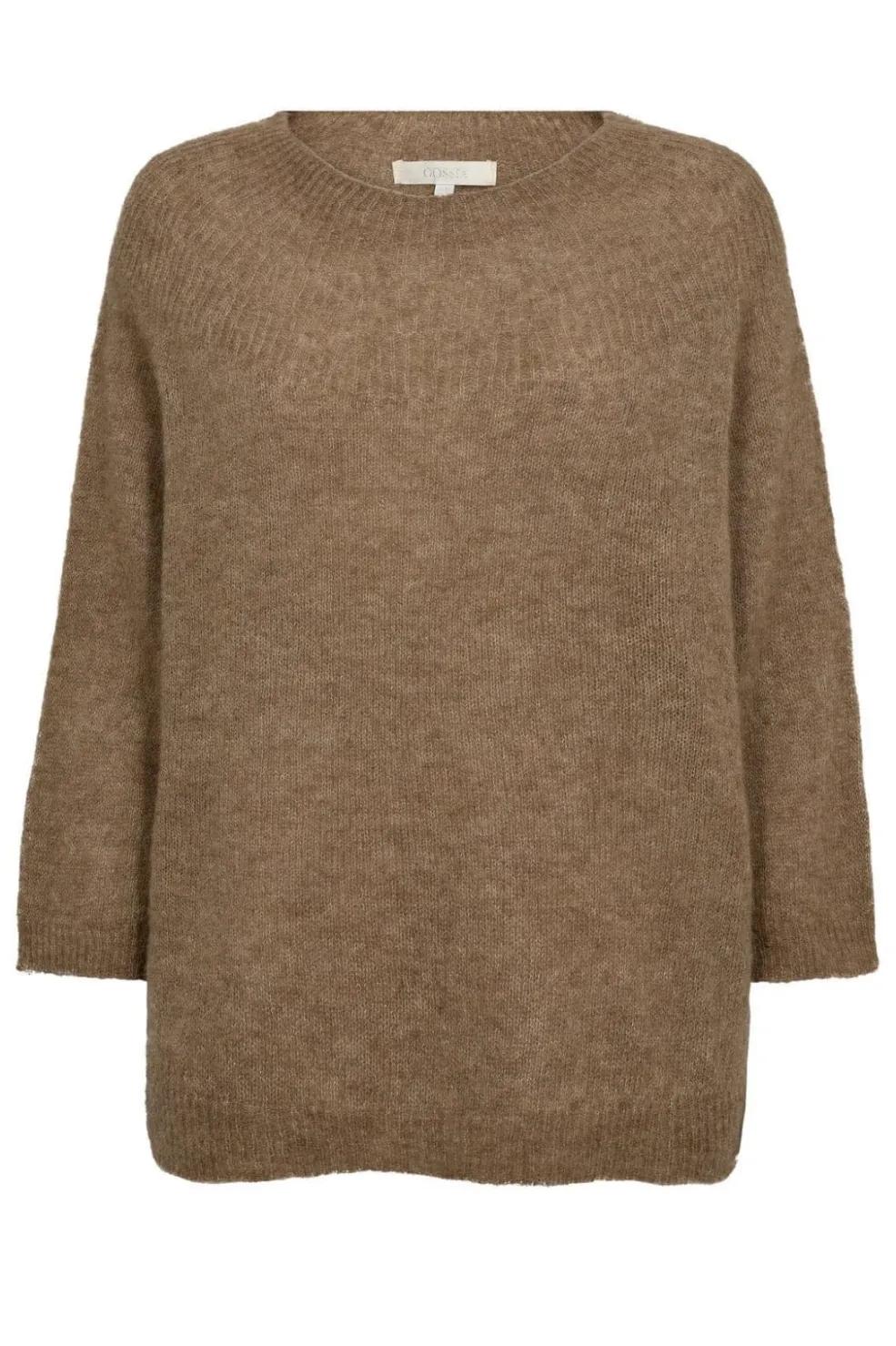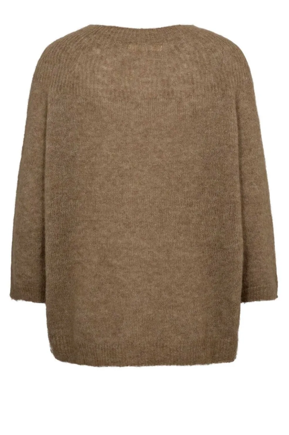 Brun sweater fra Gossia i en blød strik med en afslappet pasform og 3/4 ærmer.