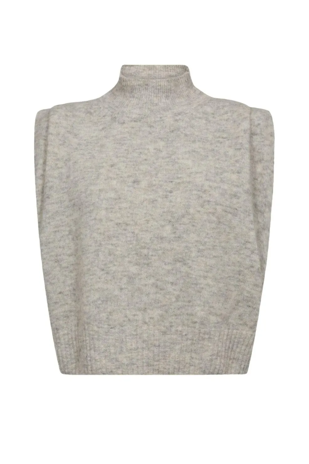Ærmeløs top fra Gossia i lys grå meleret nuance. Lavet af 50% nylon, 32% uld, 15% alpolyamid og 3% elastan.