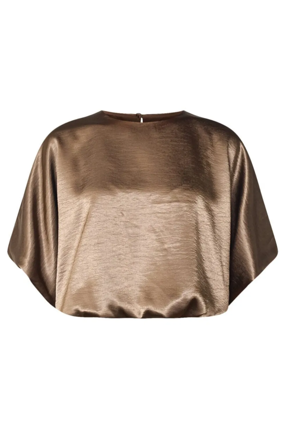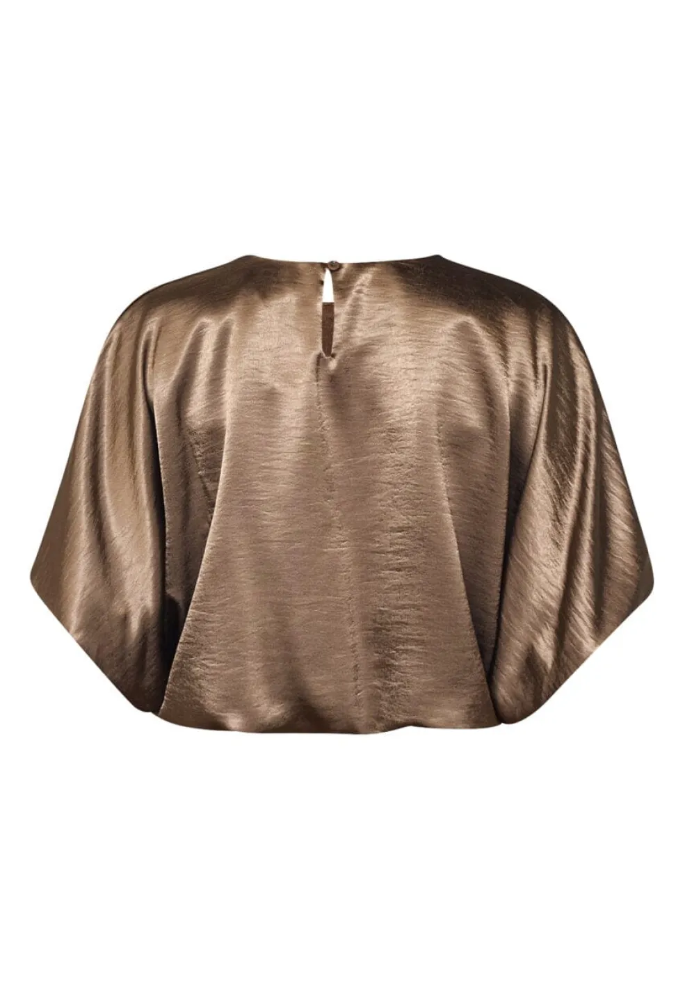 Brun top fra Sisters Point, lavet af 100 % polyester med en glat satinfinish. Toppen har korte ærmer og en løs pasform.