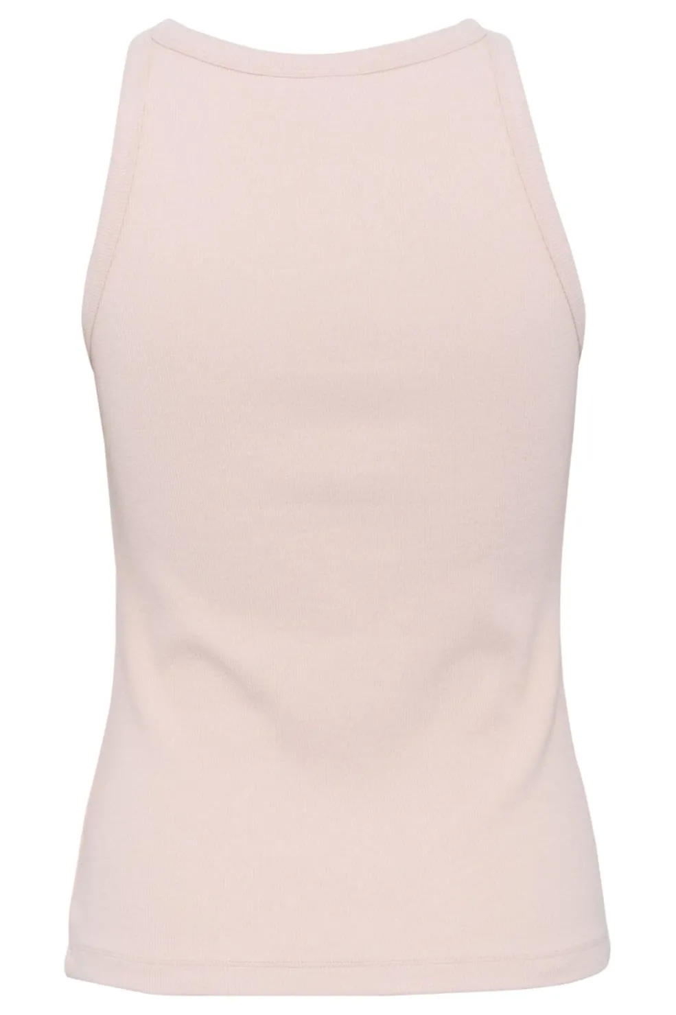 Tanktop fra Gestuz i en støvet rosa nuance. Den har en ribbet tekstur og et broderet logo på forsiden. Med en høj, rund halsudskæring og en regular fit er den både praktisk og stilren.