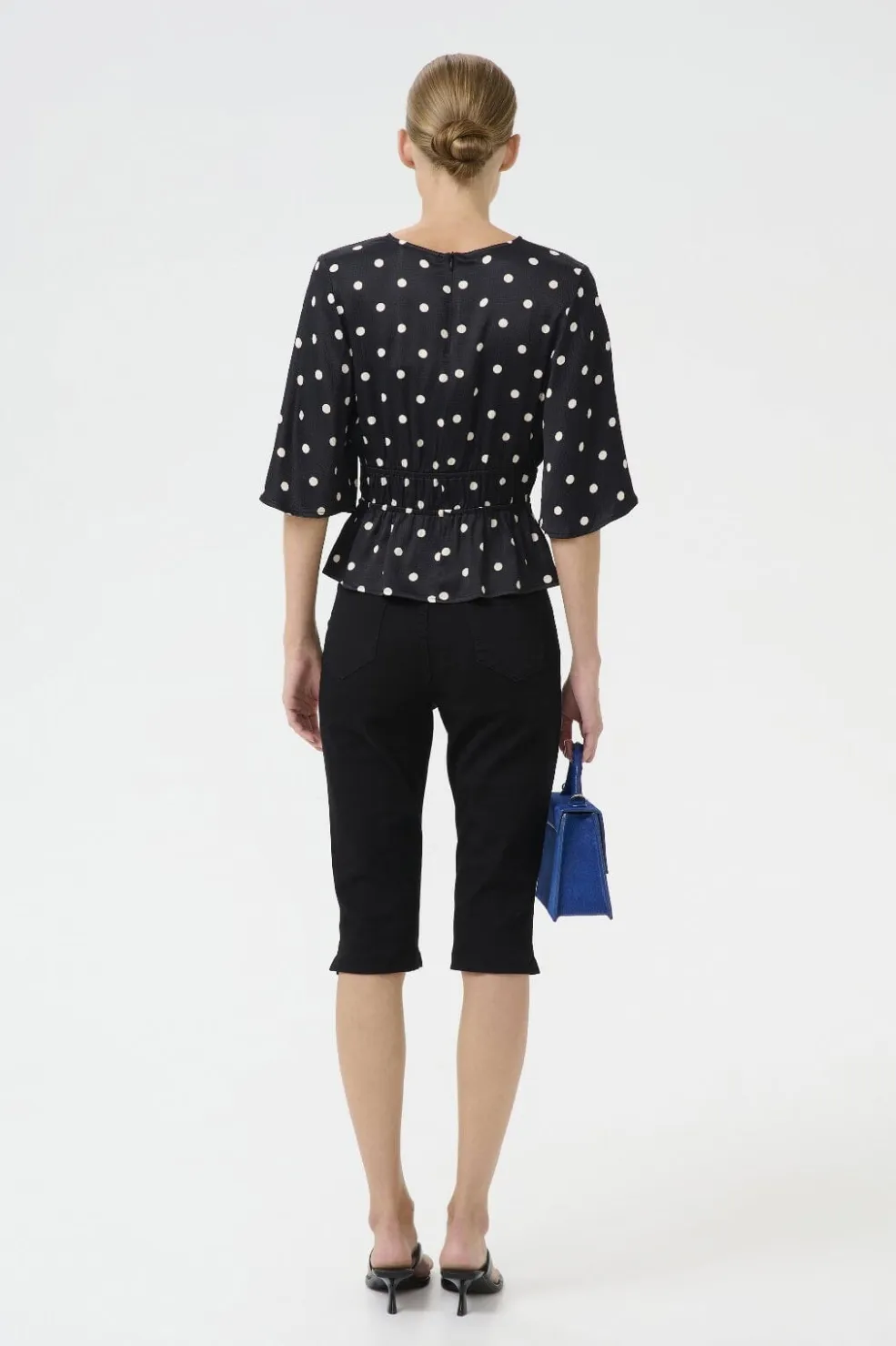 Sorte capri-bukser fra Gestuz med en lige pasform. Bukserne har en regulær talje og når til midt på læggen.