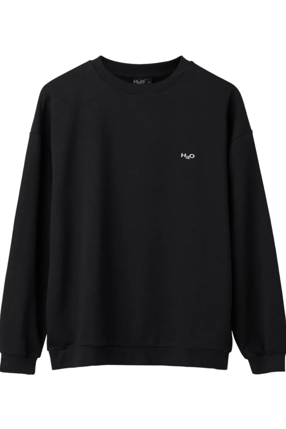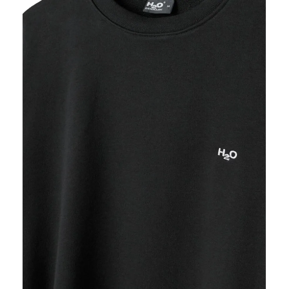 Sort sweatshirt fra H2O med rund halsudskæring og ribkanter. Den har et lille hvidt H2O-logo på brystet og er fremstillet i en kraftig bomuldsblanding med en vægt på 320 gram.