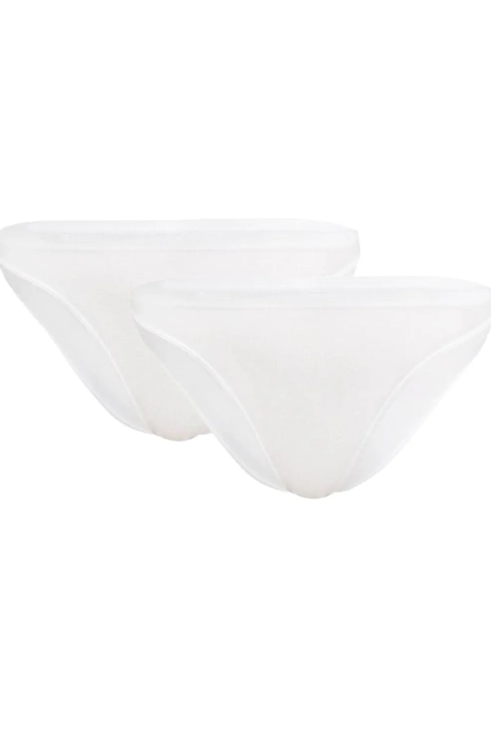 Hvide trusser fra Soft Basic i 2-pak. Undertøjet er fremstillet af genanvendt polyamid, der holder faconen selv efter gentagne vaske. Materialet sikrer god pasform og bevægelsesfrihed.