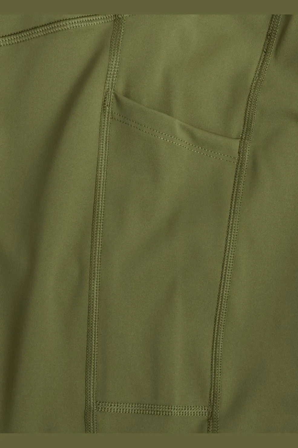 Olivengrønne træningstights fra Halo, fremstillet i et fleksibelt materiale med dekorative syninger. Tightsene har en højtaljet pasform og ankellængde.