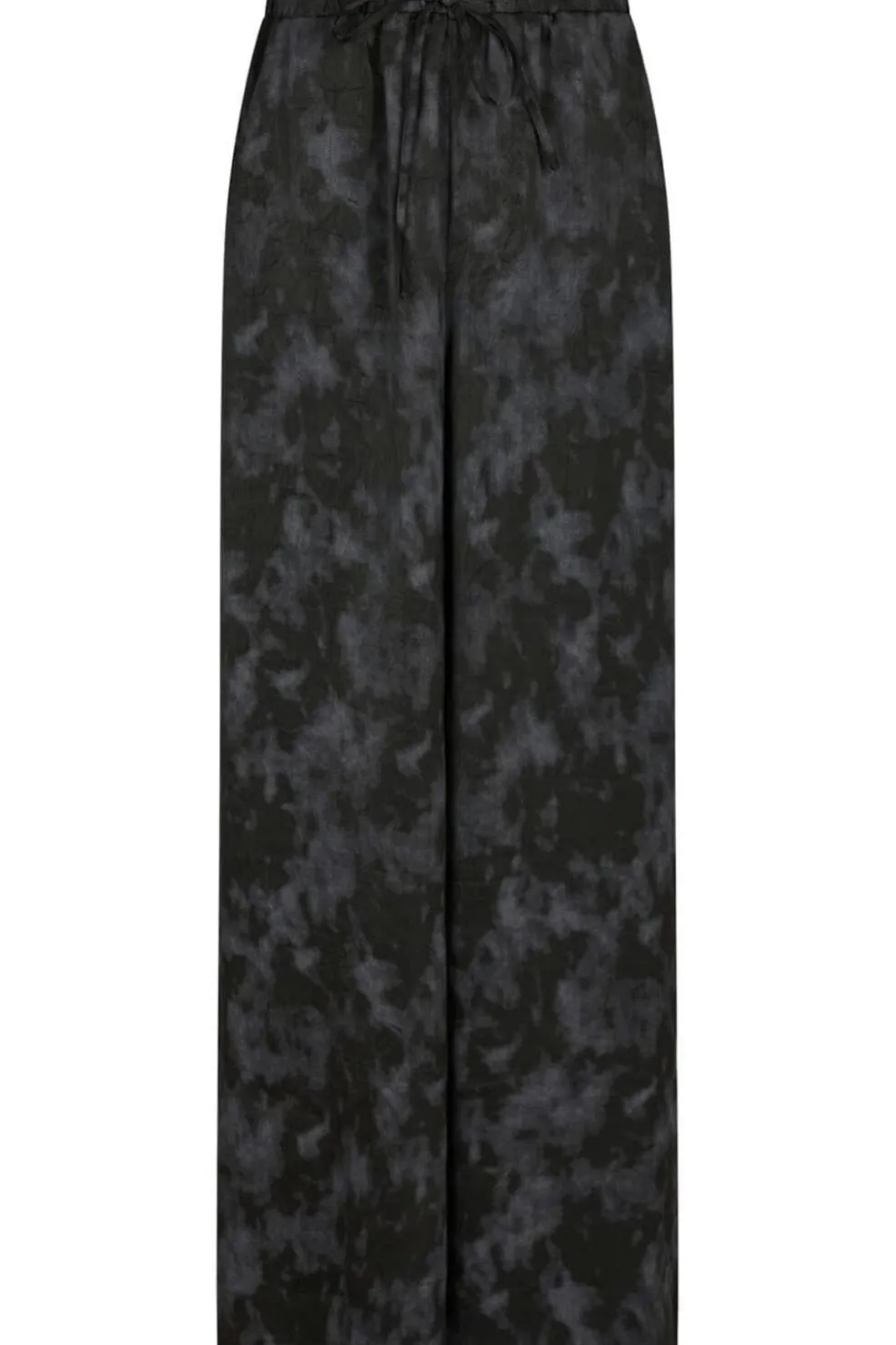 Mørkegrå bukser fra Neo Noir med acid wash-mønster. Bukserne har en afslappet pasform og er designet med bindebånd og elastik i taljen samt dekorative sløjfer.