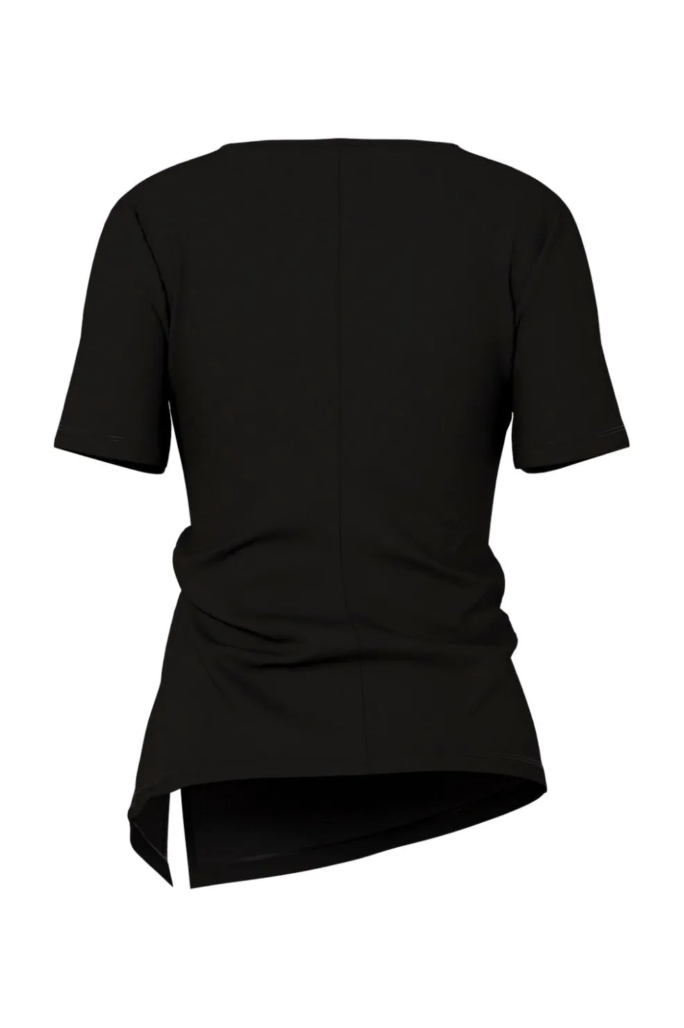 Sort t-shirt fra Hypedrop med drapering på siden. T-shirten har en rund halsudskæring og korte ærmer. Snoningsdetaljen på siden giver t-shirten et særpræg.