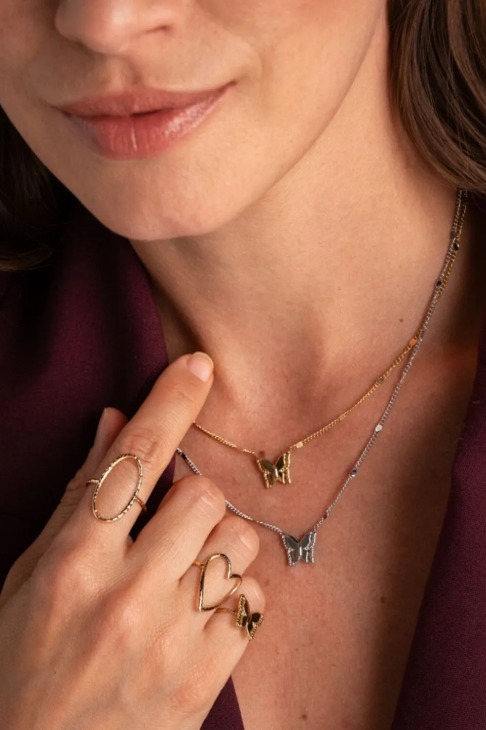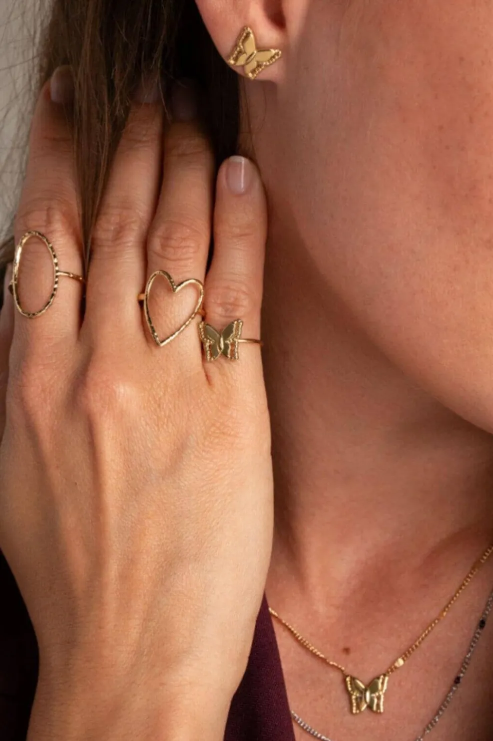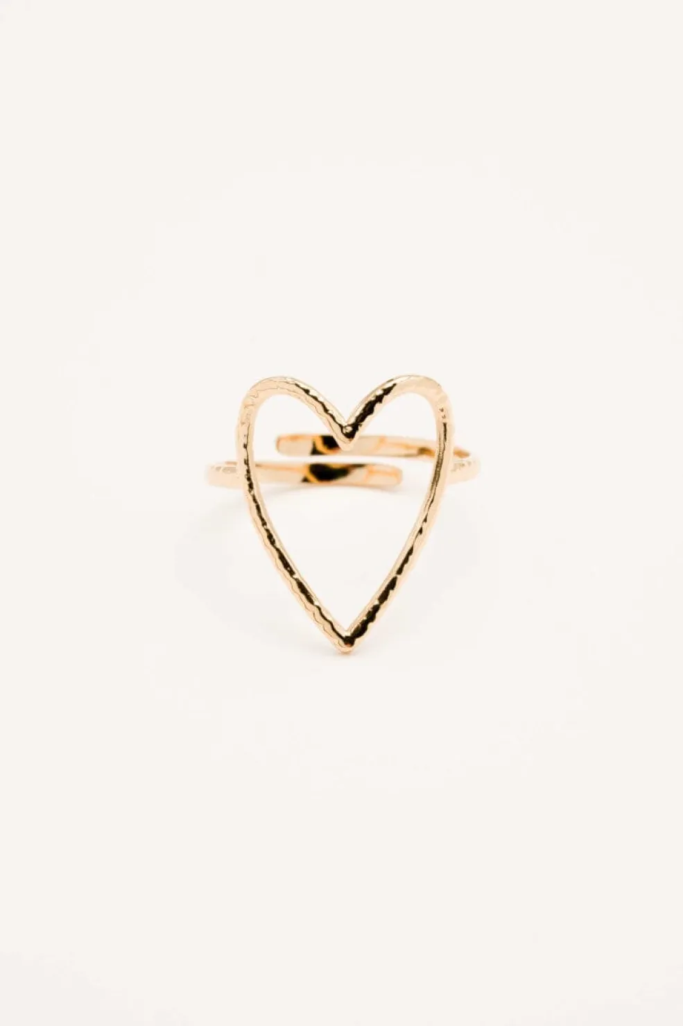 Stainless steel ring composed of a textured openwork heart. Adjustable, the ring tightens or enlarges: from size 52 to 56 Ring height: 20mm Guaranteed nickel-free, cadmium-free, lead salt-free. Water resistant and does not darken.
