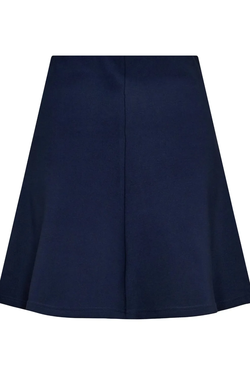 Kort nederdel fra Liberte i mørkeblå. Den korte lårlængde og regular fit gør den nem at style til forskellige anledninger.