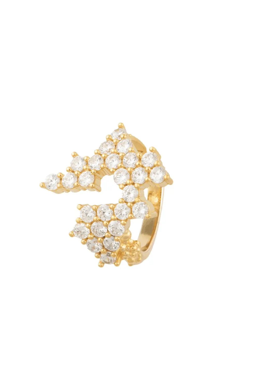 Forgyldt ring fra House Of Vincent med to symmetriske pilformede mønstre. De hvide sten sidder tæt sammen og dækker hele mønsteret på ringens overside.