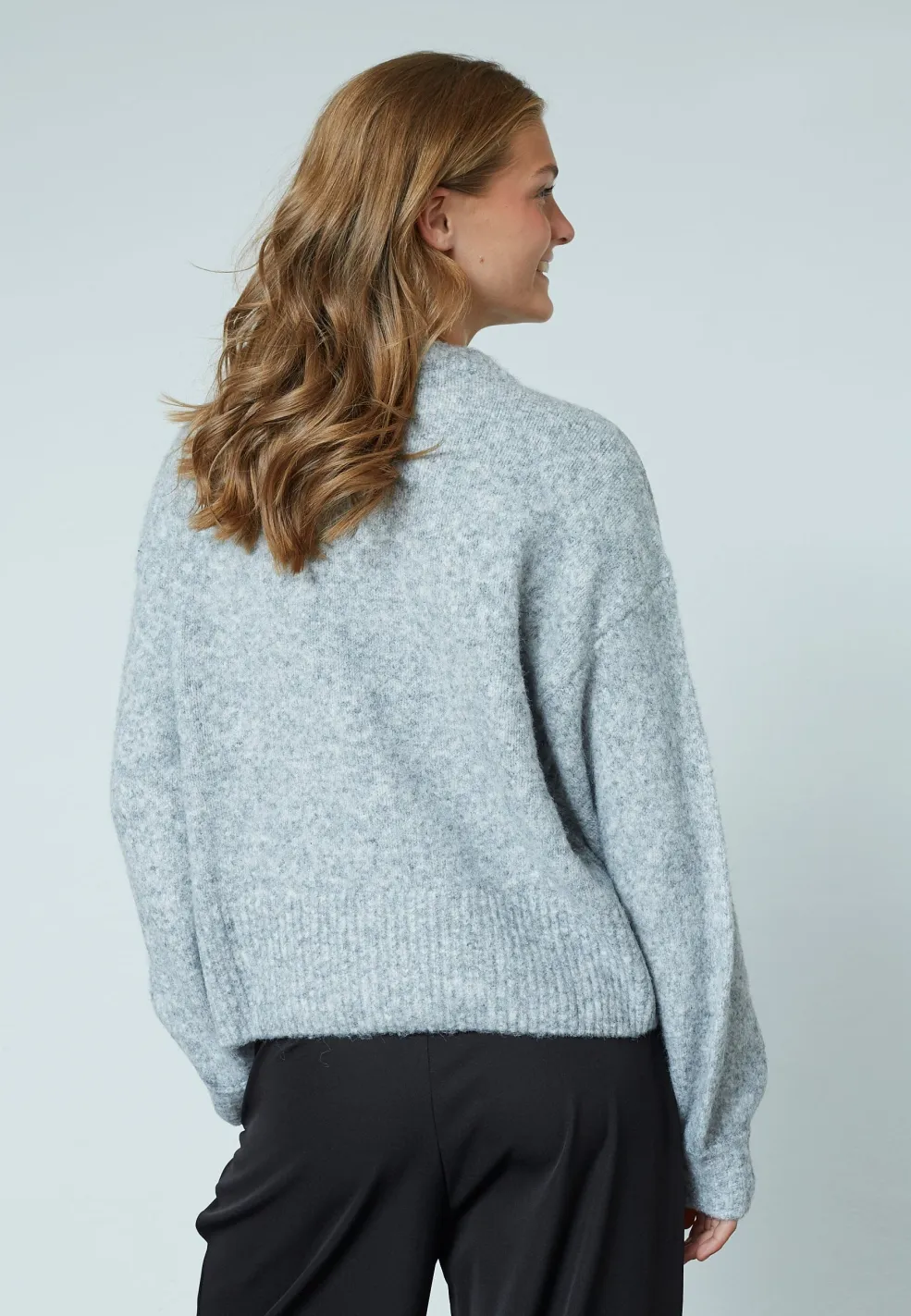 Grå strikpullover fra Sisters Point i en blød kvalitet. Pulloveren passer godt til både afslappet brug og hjemme.