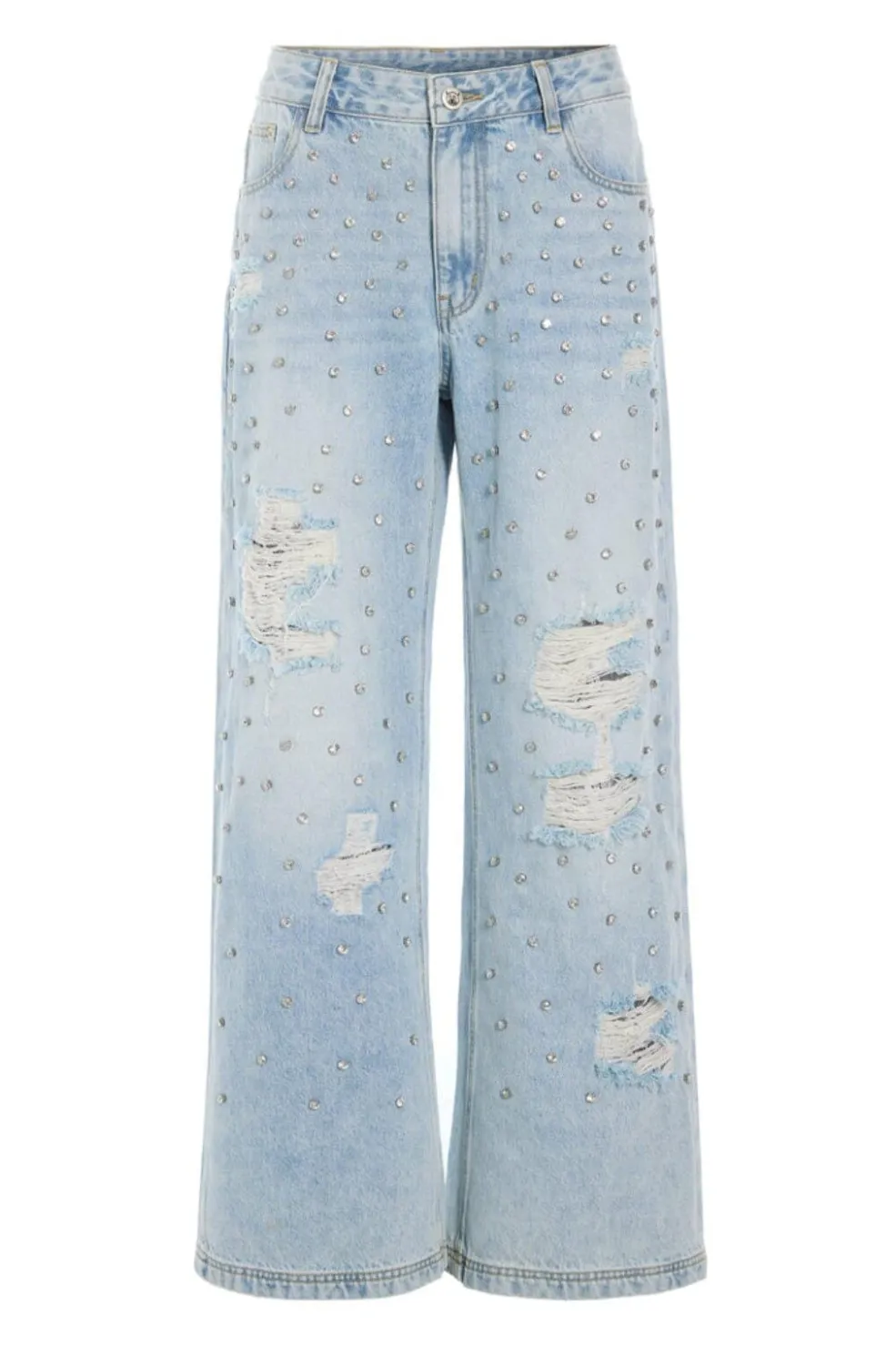 Lyseblå denimjeans fra Hunkøn med små nitter på fronten. Jeansene passer til både afslappede hverdage og festlige lejligheder.