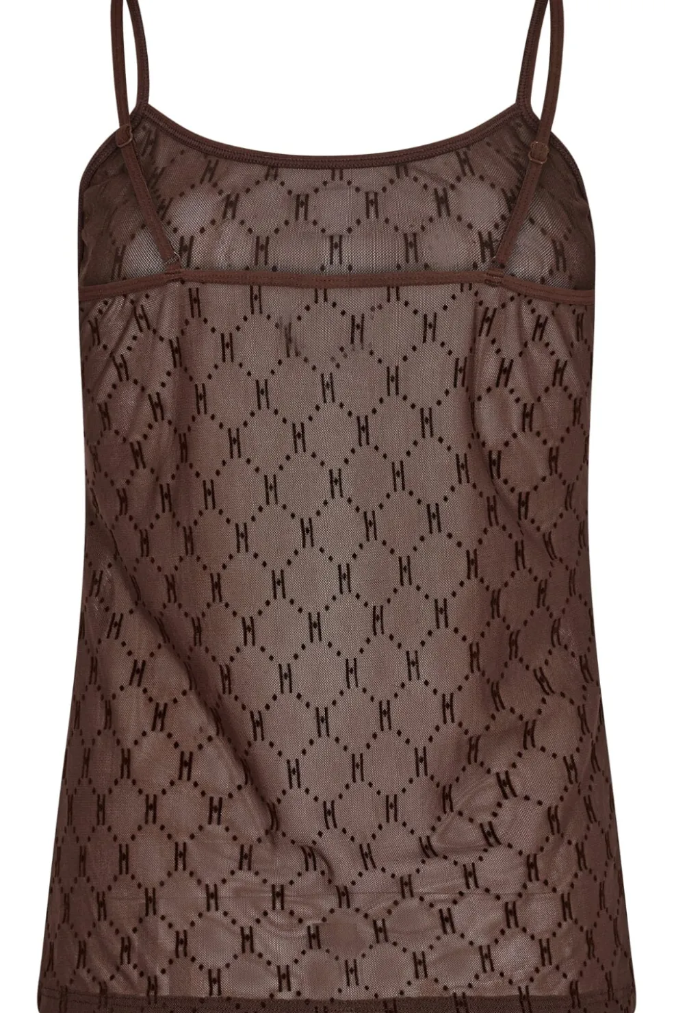 Brun mesh singlet fra Hype The Detail med et detaljeret mønster i stoffet. Toppen har en figurnær pasform og en firkantet halsudskæring, der giver et rent udtryk.