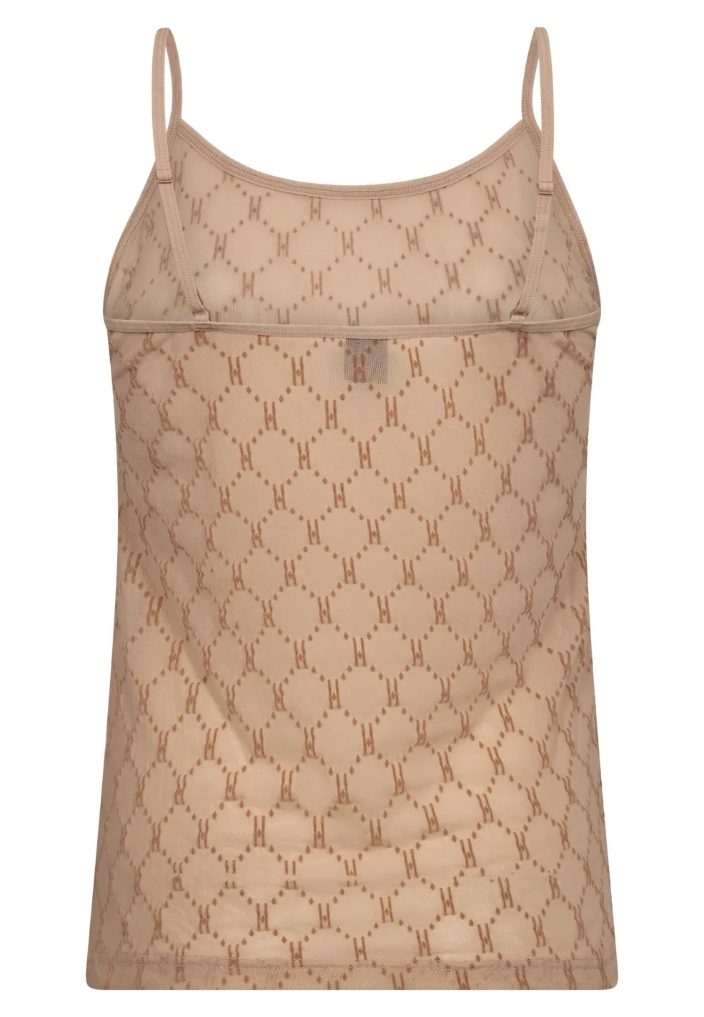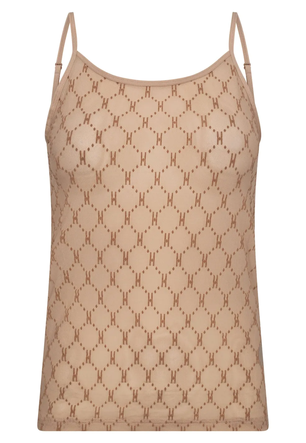 Mesh singlet fra Hype The Detail i sandfarve med geometrisk mønster. Den har tynde stropper og en rund halsudskæring samt et let og luftigt design.