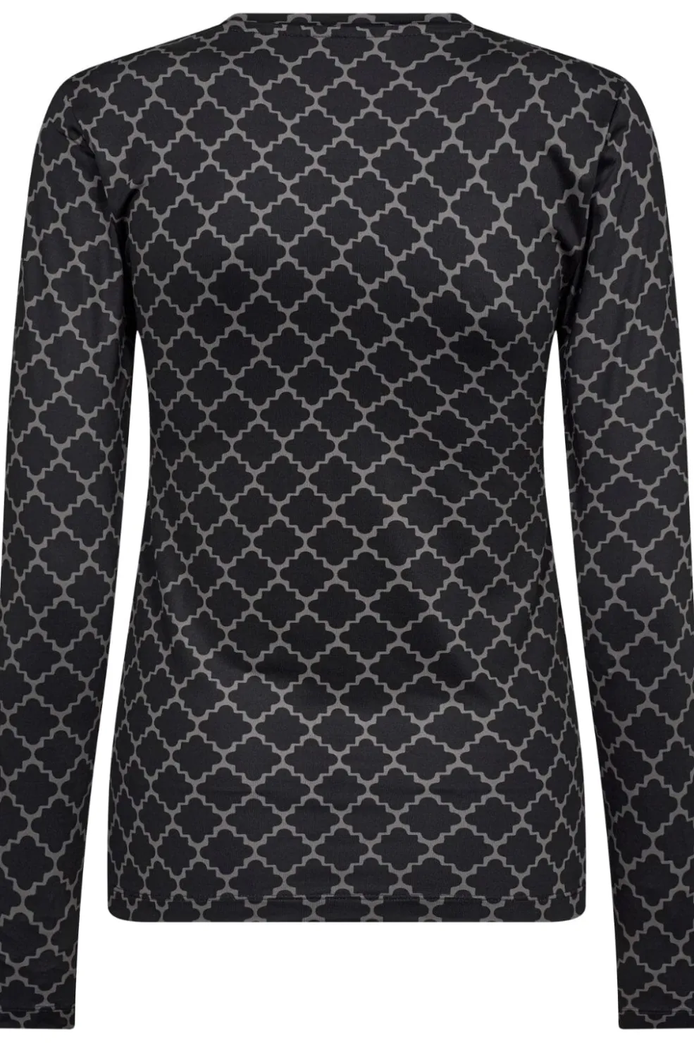 Sort bluse fra Hype The Detail med et geometrisk mønster i sort og grå. Blusen har lange ærmer og en rund halsudskæring med et rent og enkelt design.