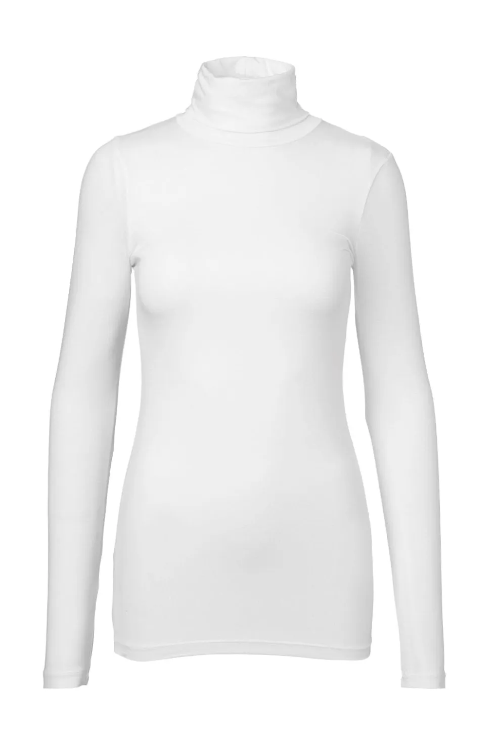 Hvid rullekravebluse fra MbyM i blød modal med høj hals og lange ærmer. Blusen har en loose fit-pasform og er lavet i et strækbart materiale.