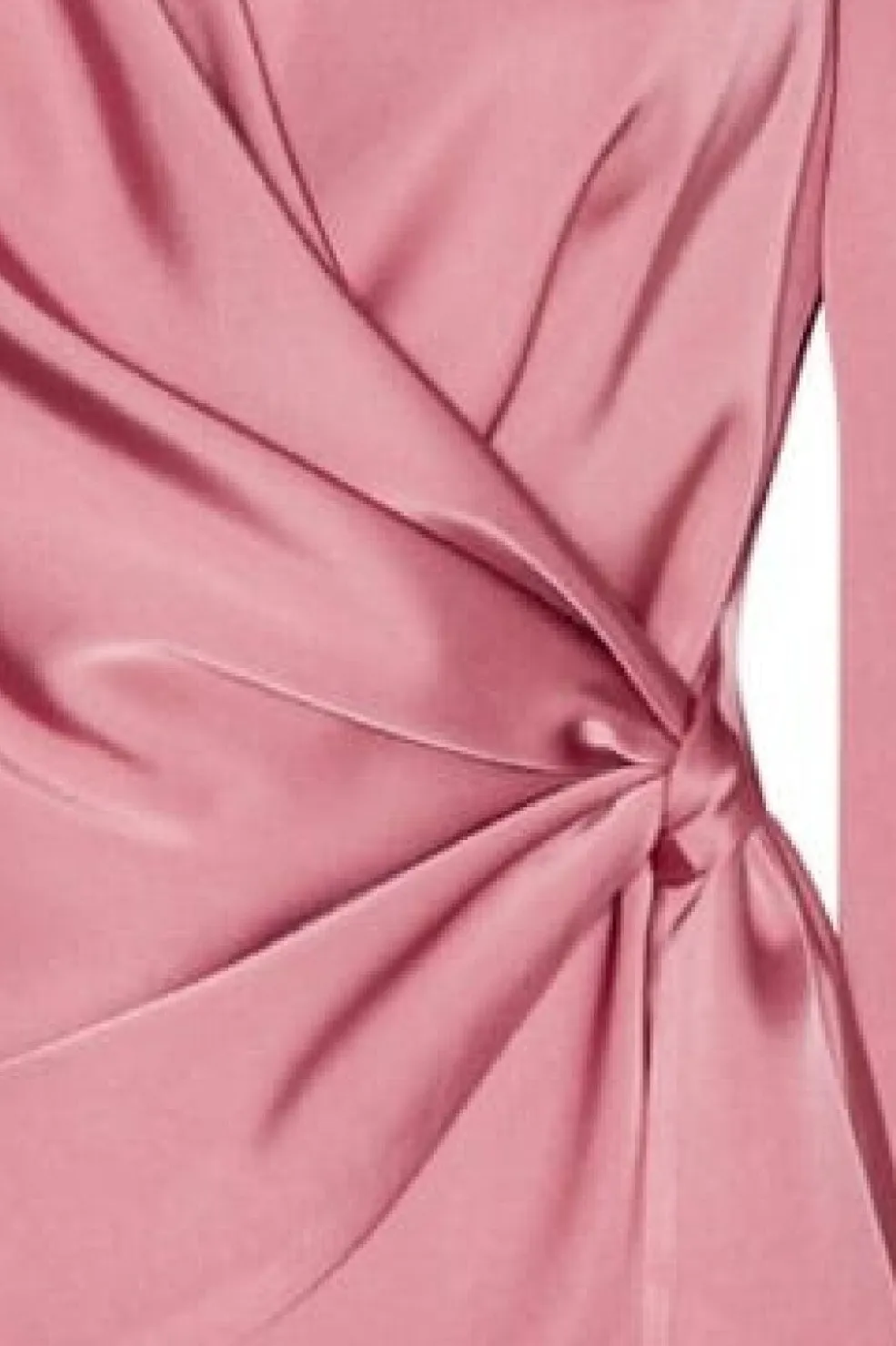 Pink bluse fra Karmamia med wrap-design og drapering. Blusen har en V-halsudskæring og bindebånd i siden, der skaber folder i stoffet.