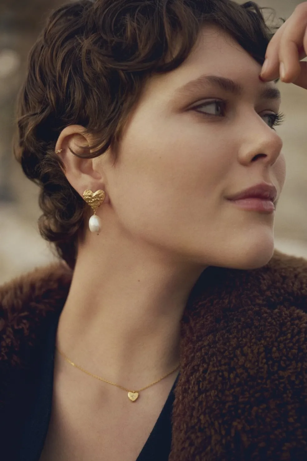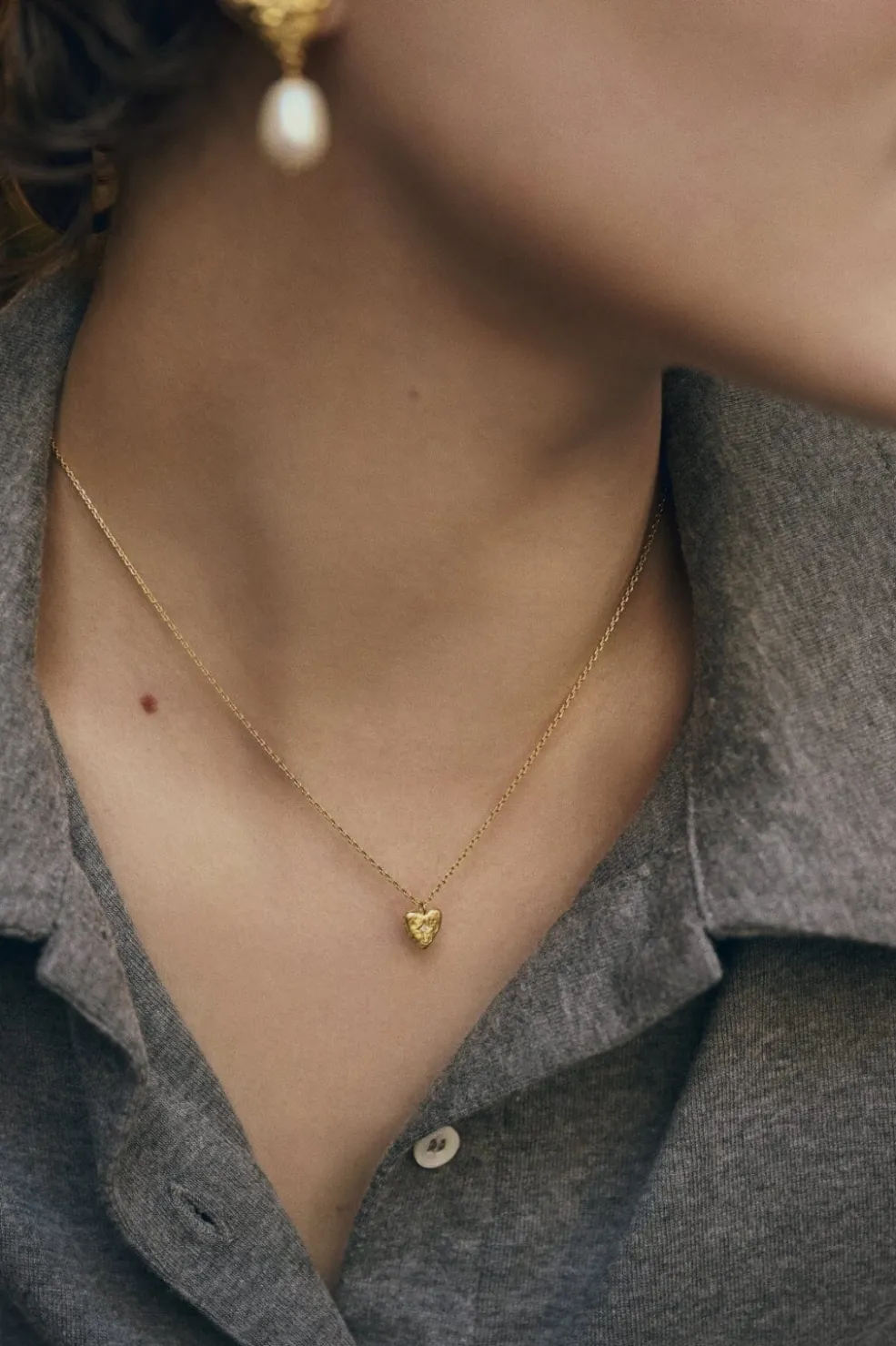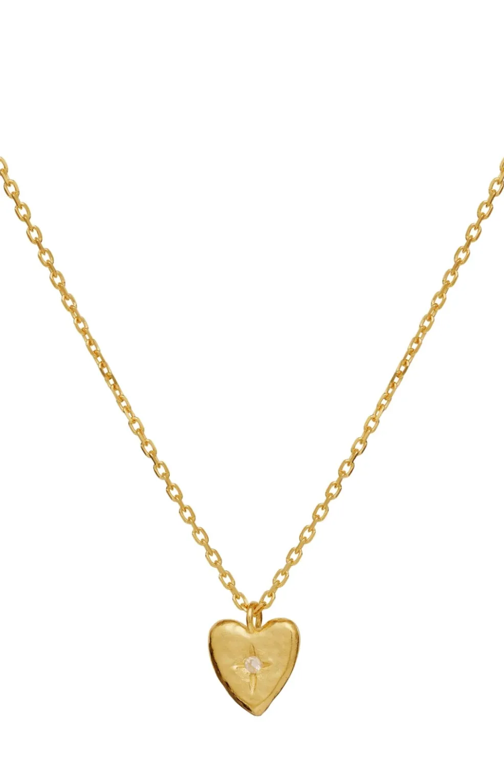 Gylden halskæde fra Maanesten med hjerteformet vedhæng. Fremstillet af genanvendt sterlingsølv med 18 karat guldbelægning. Den fine kæde har et delikat design.