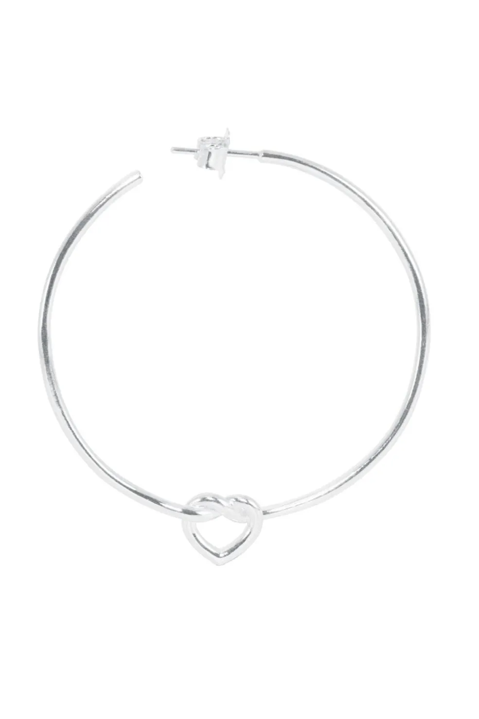 Ørering fra Jane Kønig, lavet af sterlingsølv med et stort bundet hjerte-design. Hjertet sidder på en rund bøjle og fungerer som et dekorativt element.