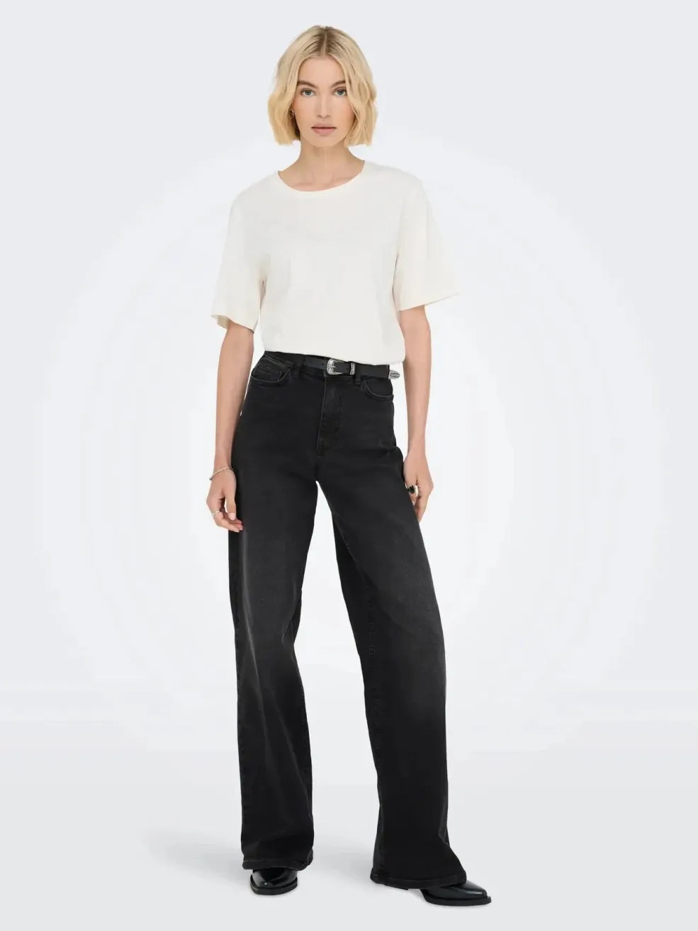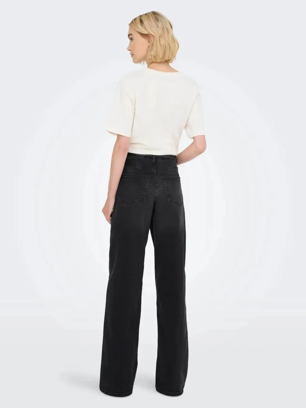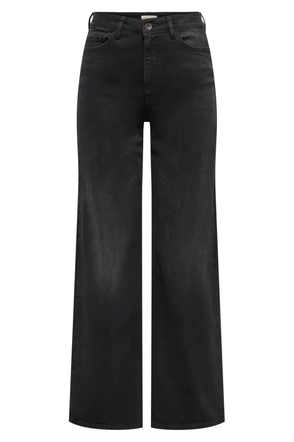 Sorte wide-leg jeans fra JDY i sort denim. Jeansene har en løs pasform og høj talje med ankellængde.