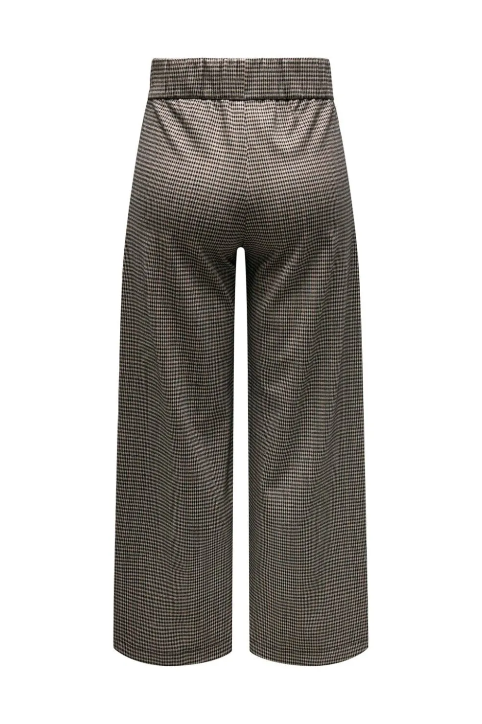 Lange bukser fra JDY med små tern i grå og beige nuancer. Bukserne har høj talje med elastik og knapper i linningen, sidelommer og bæltestropper.