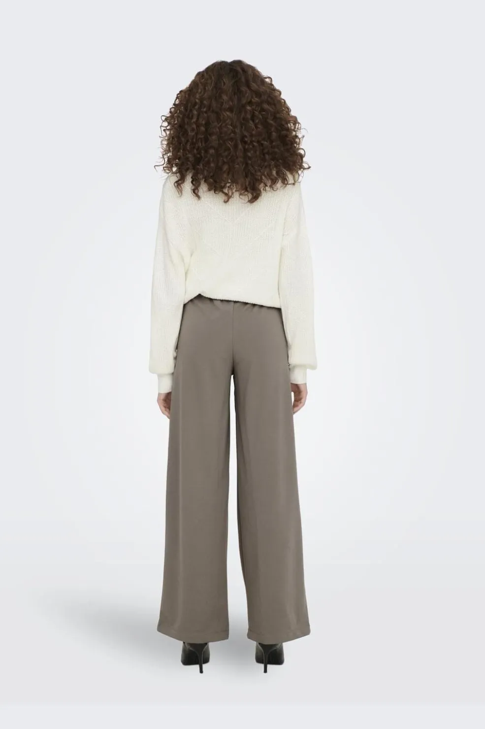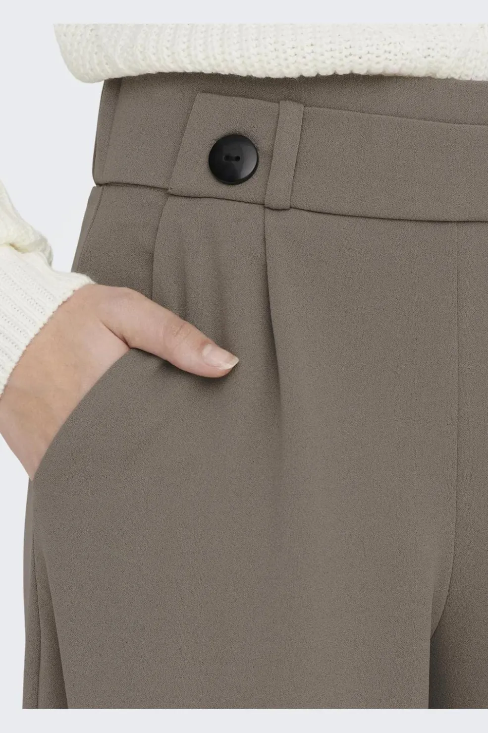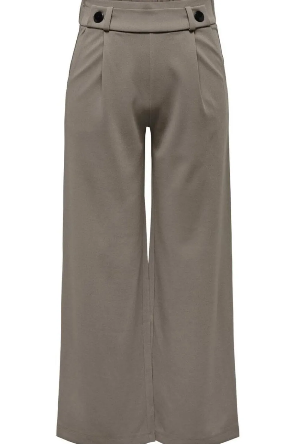 Viddebukser fra JDY i en neutral taupe-nuance. Bukserne har en høj talje med sorte knapper og plisseringer foran. Den løse pasform og wide leg-silhuet giver god bevægelsesfrihed.