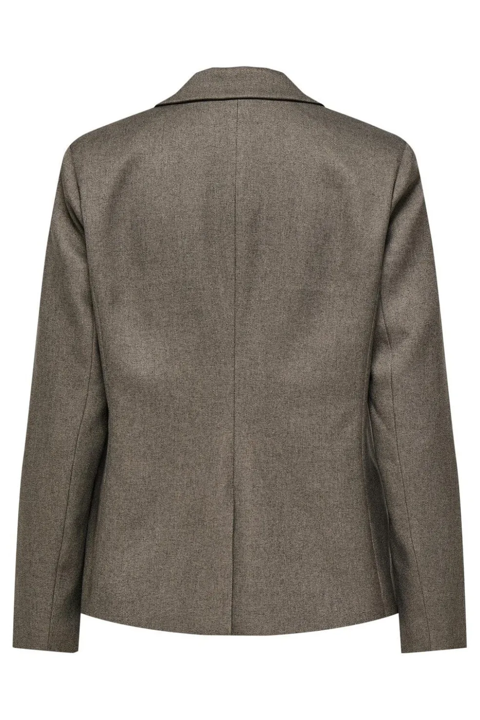 Blazer fra JDY i en brun-grå melangefarve. Lavet af 100% polyester med en klassisk reverskrave og enkelt knaplukning.