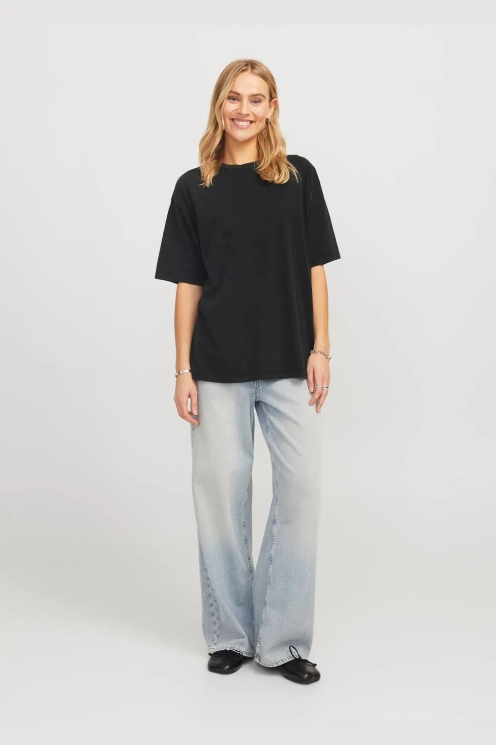 Sort T-shirt fra JJXX i økologisk bomuld. T-shirten har en løs pasform med rund halsudskæring og korte ærmer.