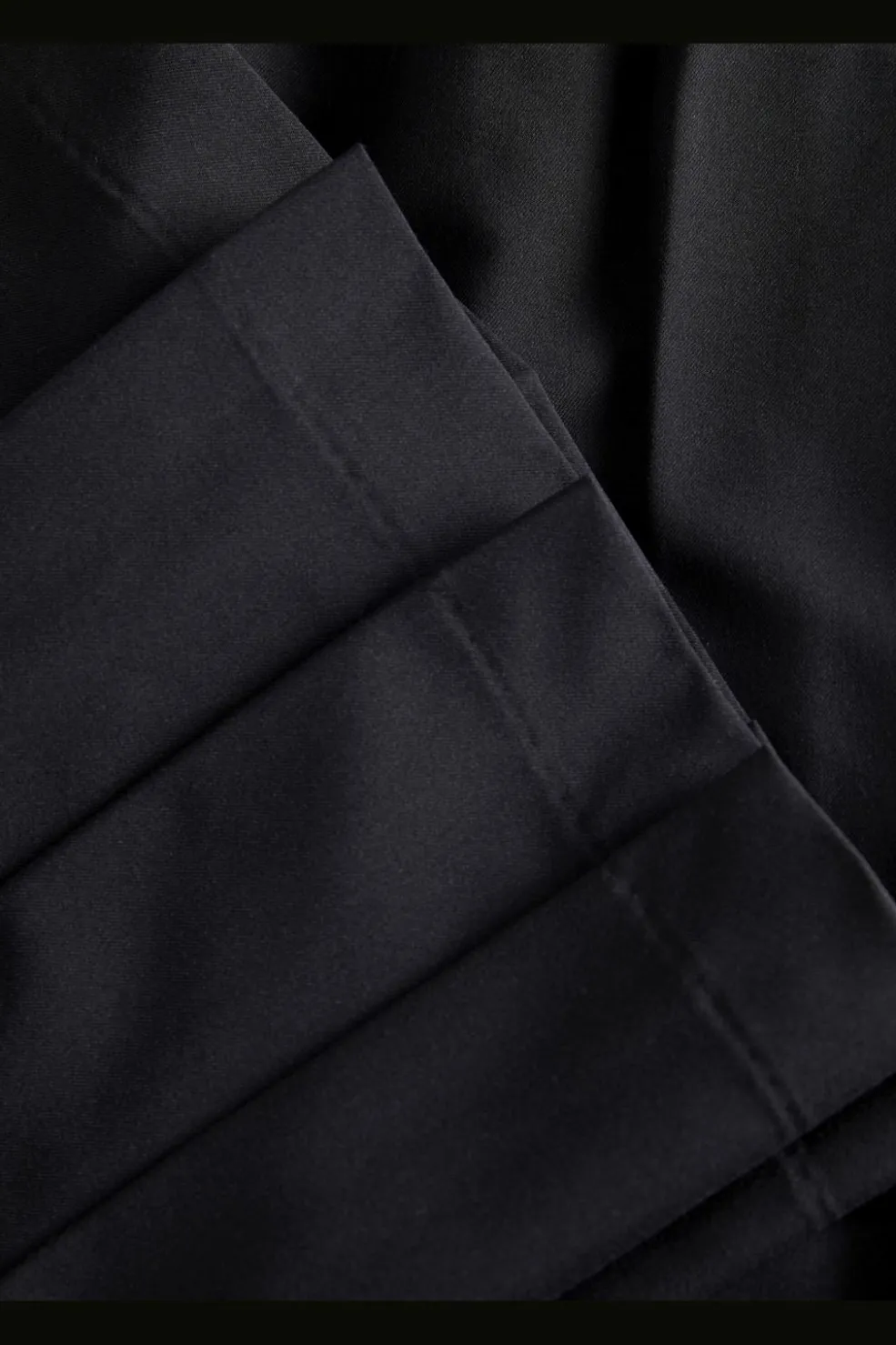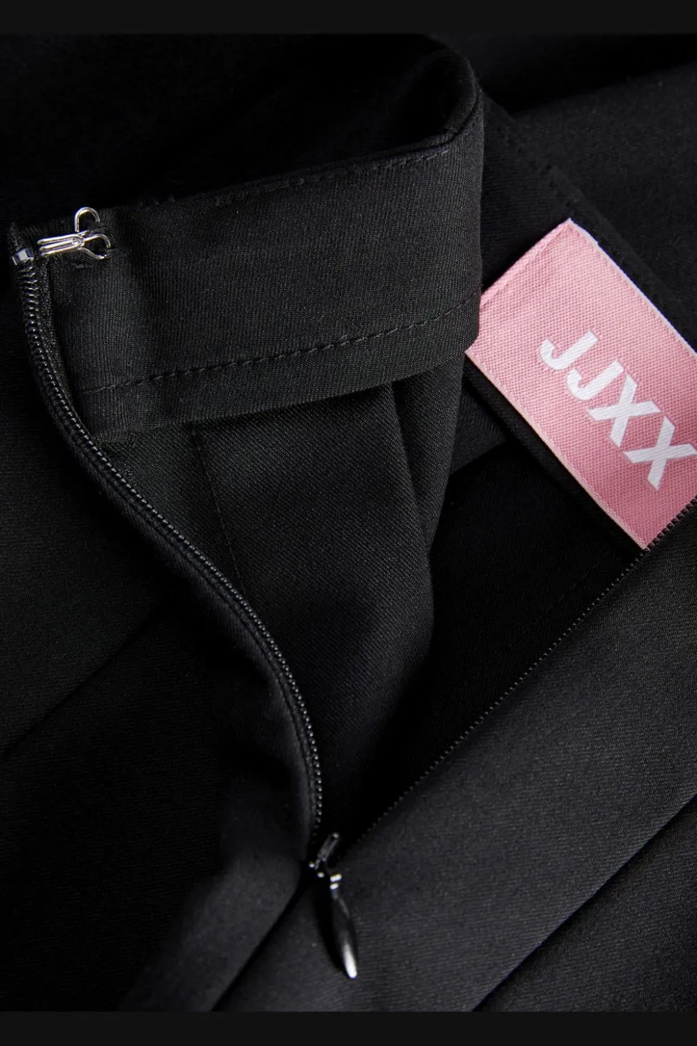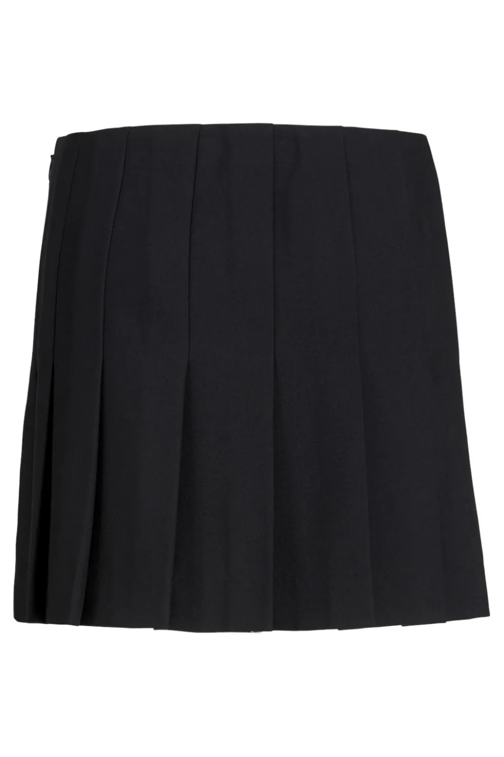 Sort plisseret nederdel fra Jjxx med en lårlang længde. Den har en almindelig taljehøjde og en skjult lynlås i siden.