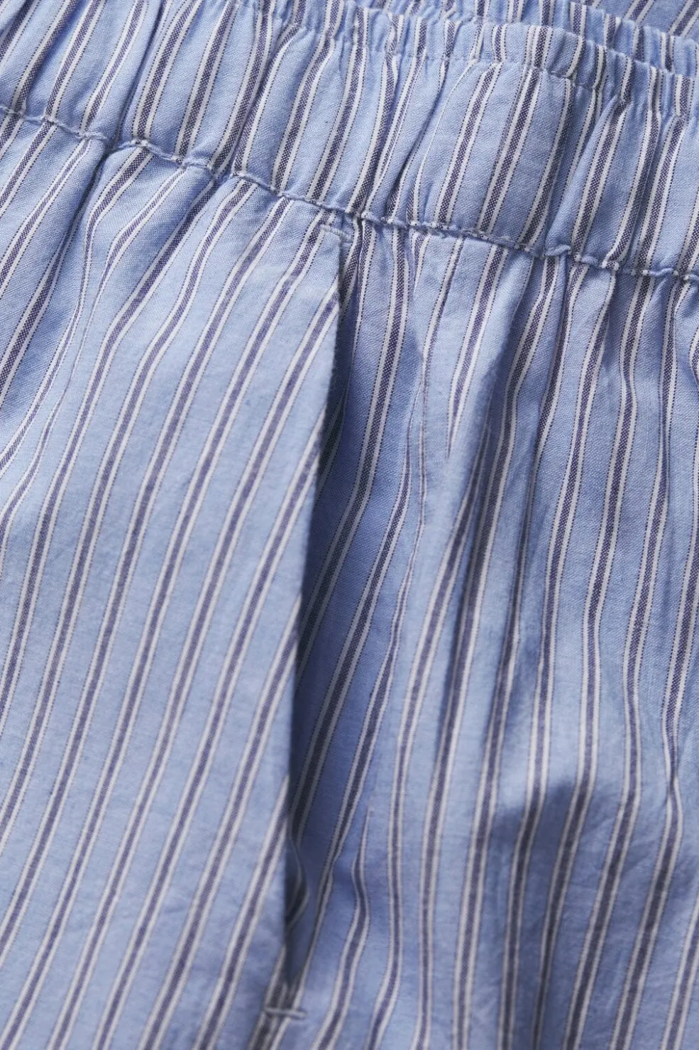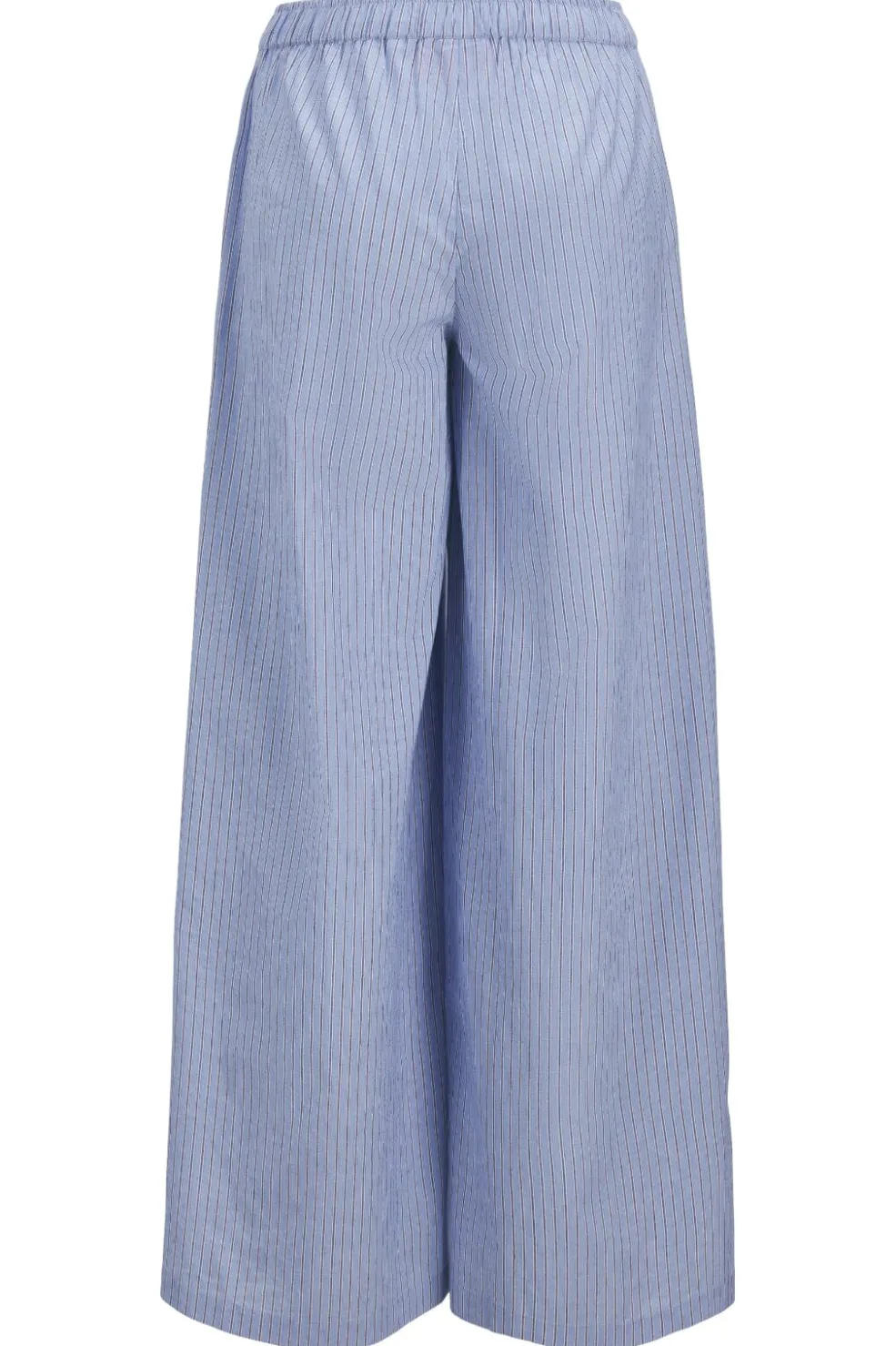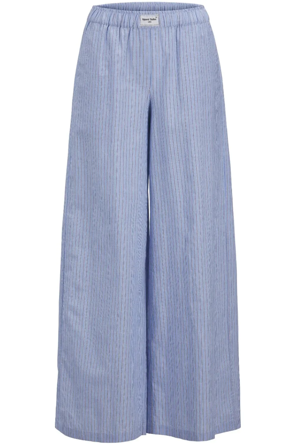 Stribede bukser fra Jjxx i lyseblå bomuldskvalitet. Bukserne har en løs pasform med brede ben og elastisk talje i ankellængde.