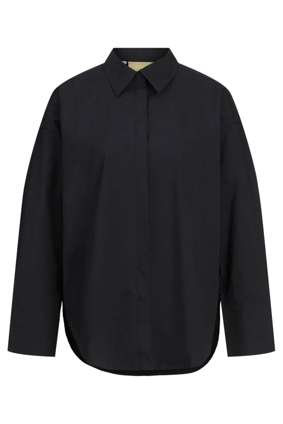 Sort skjorte fra Jjxx med en oversized pasform. Skjorten har skjortekrave, lange ærmer og detaljer med bindebånd og flæser, der giver den et personligt præg.