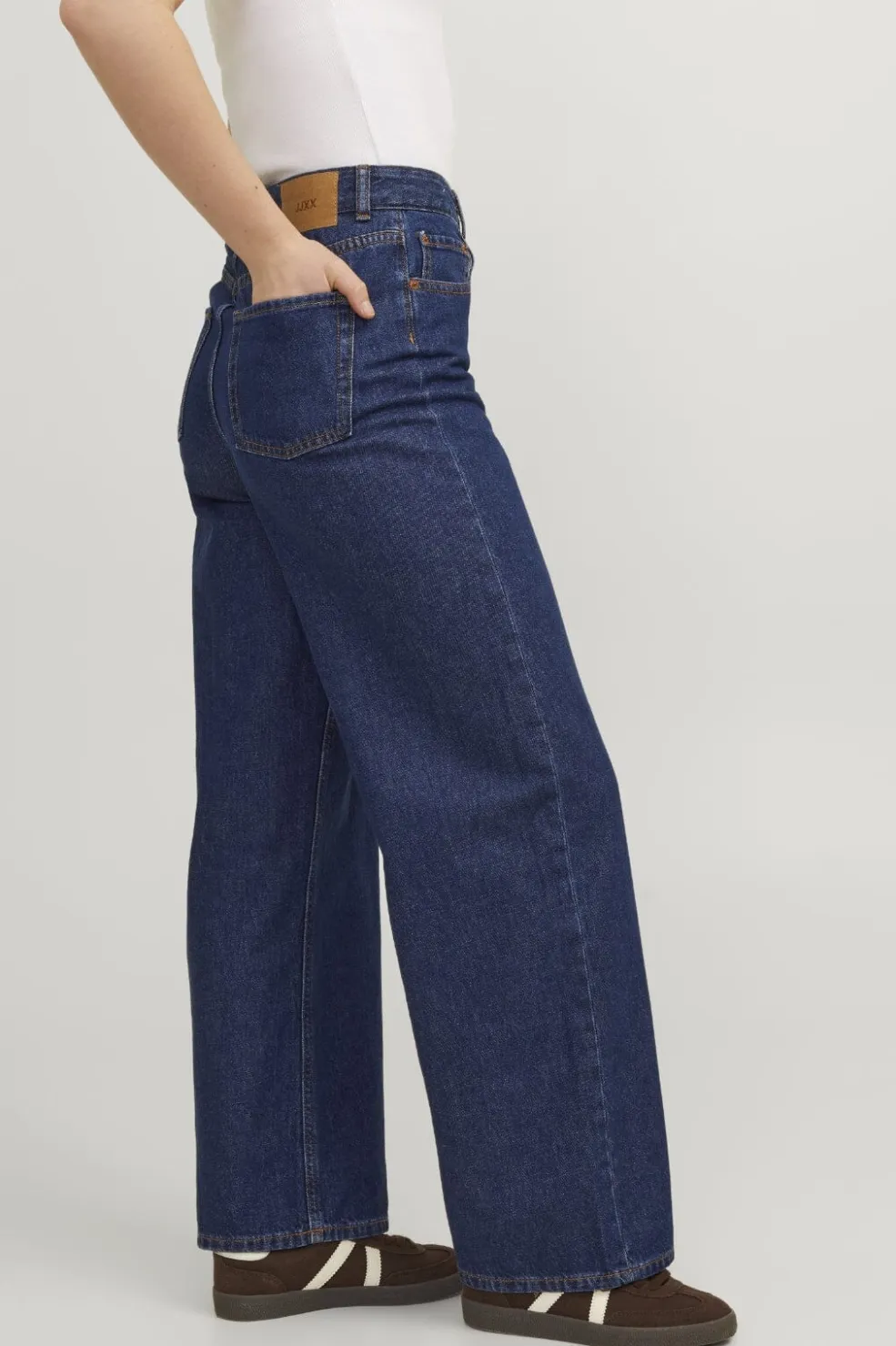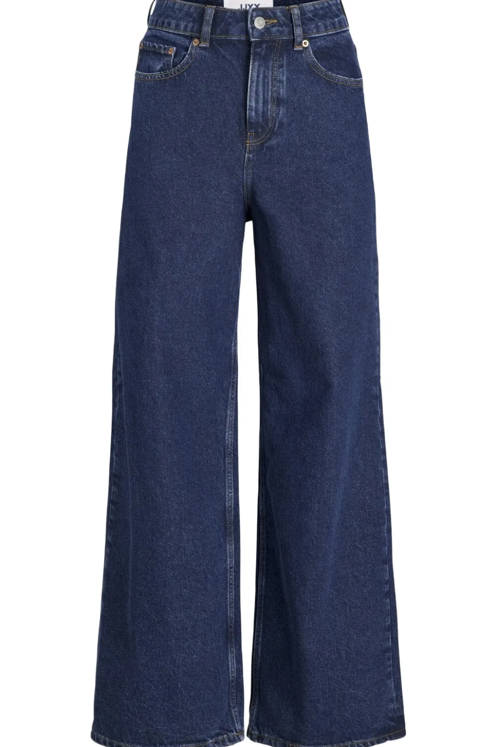 Mørkeblå jeans fra Jjxx med stonewash-behandling. Den høje talje og wide leg-pasform giver jeansene et afslappet udtryk, mens det ufleksible bomuldsstof sikrer en stabil form.