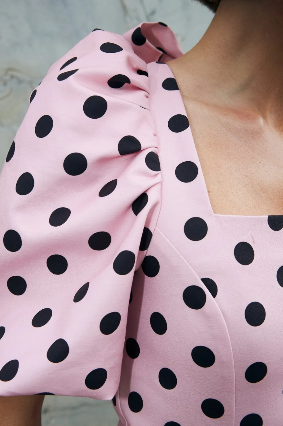 Kort kjole med puffede ærmer i en tætsiddende pasform. Kjolen har bindebånd og en lav ryg.• Kort og tætsiddende pasform • Bindebånd i ryggen • Firkantet halsudskæring både foran og bagpå Modellen er XXX cm høj og bærer en størrelse 36.Materiale: 100% bomuld