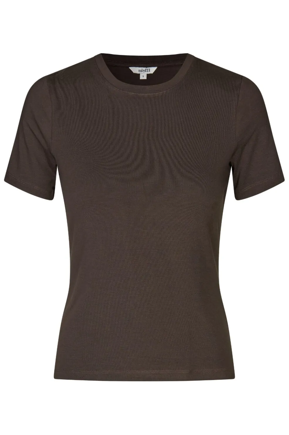 Brun T-shirt fra MbyM i en ensfarvet brun nuance. T-shirten har korte ærmer og en rund halsudskæring.