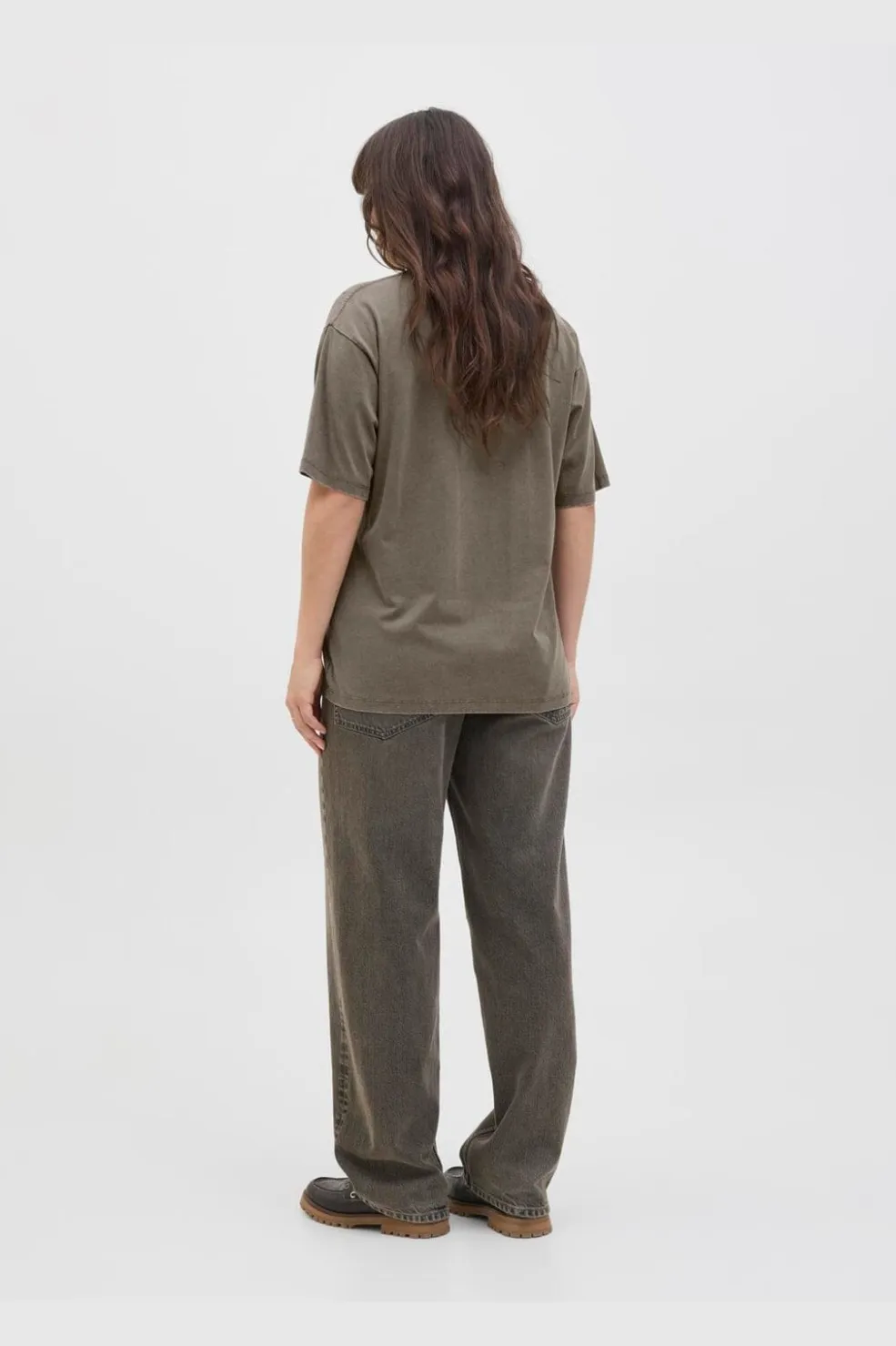 Falkegrøn t-shirt fra Jjxx i økologisk bomuld. T-shirten har en løs pasform og er behandlet med acid wash, som giver en let vasket overflade.