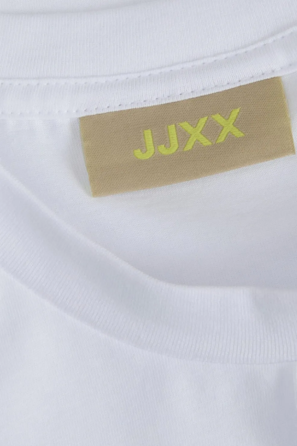 Hvid t-shirt fra Jjxx med et maritimt print. T-shirten har et kunstnerisk design med en havfrue og havmotiver i blå nuancer på forsiden.
