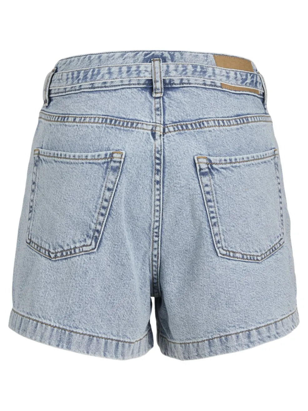 Lyseblå denimshorts fra Jjxx med høj paperbag-talje og bælte. Shortsene har stonewash-behandling og en loose fit-pasform med praktiske lommer både foran og bagpå.