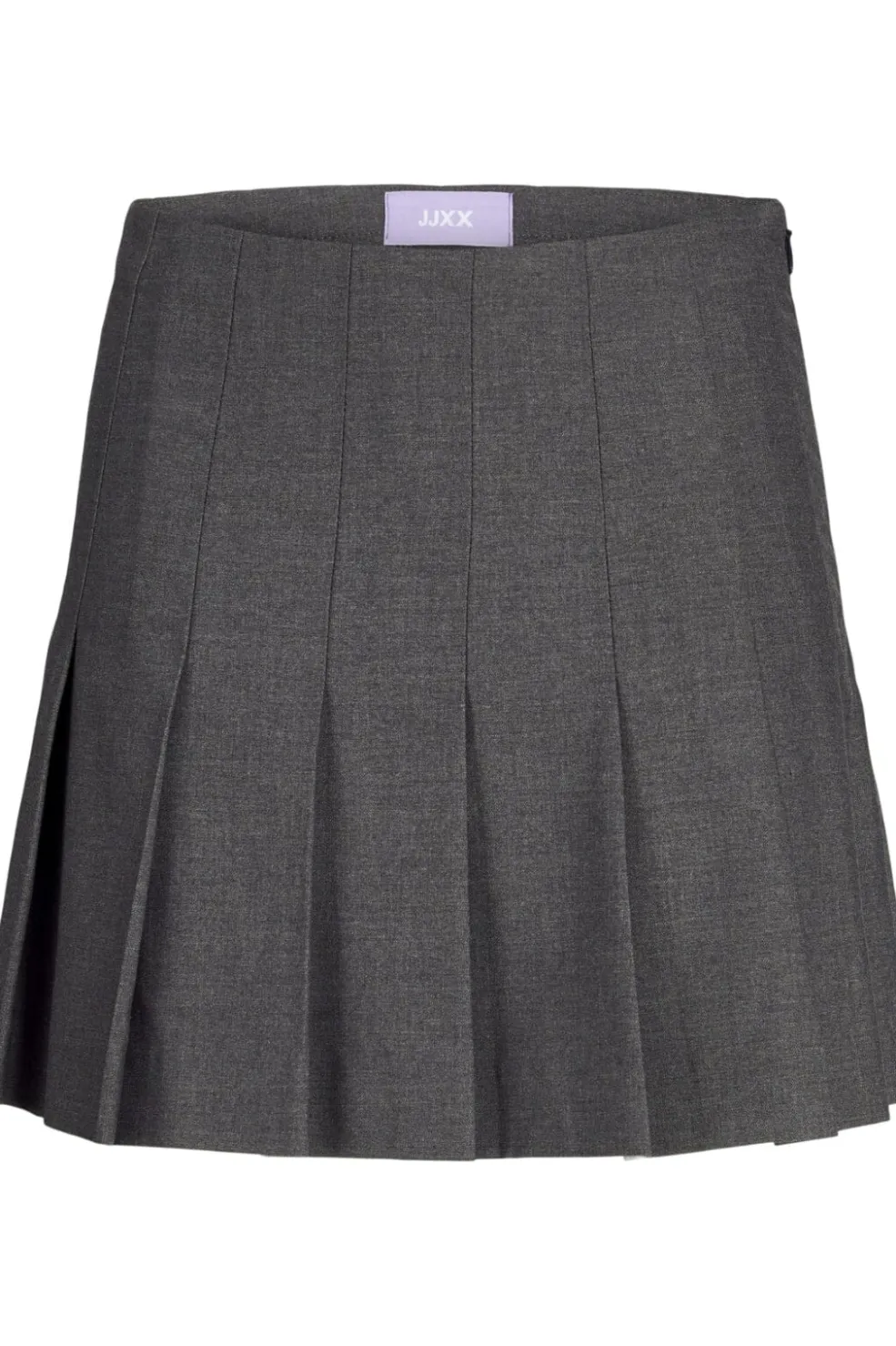 Kort plisseret nederdel fra Jjxx i mørkegrå melange. Den har en elastisk talje med regular waist og skjult lynlås i siden.