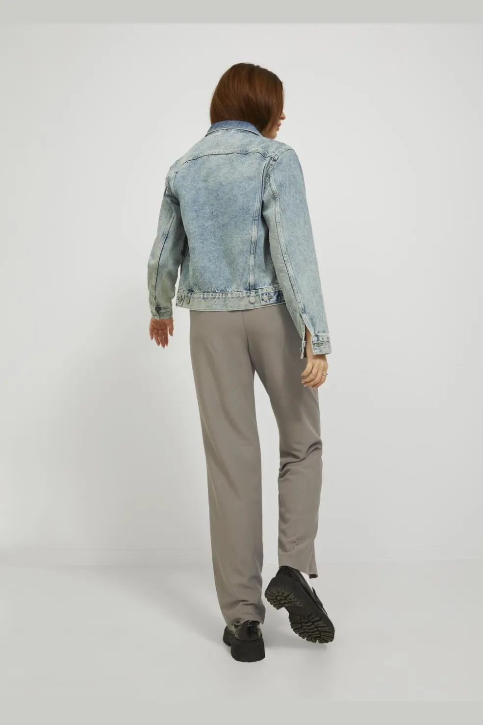 Bukser fra Jjxx i en gråbrun nuance med høj talje og lynlåslukning. De har en lige pasform og praktiske forlommer, der kan bruges til både hverdag og finere anledninger.