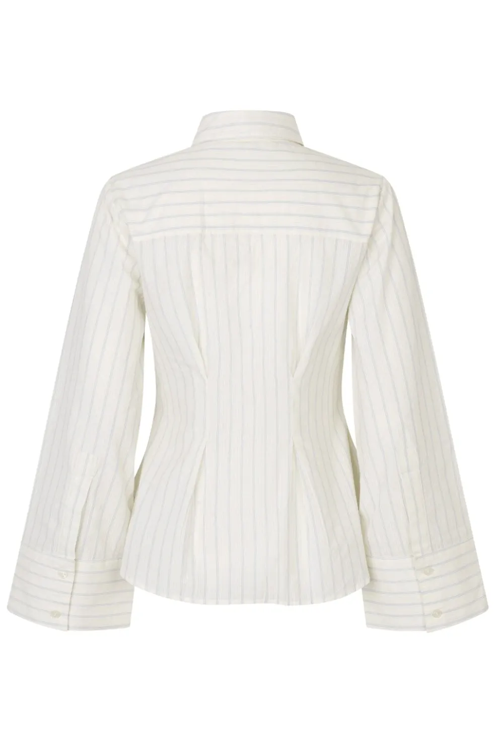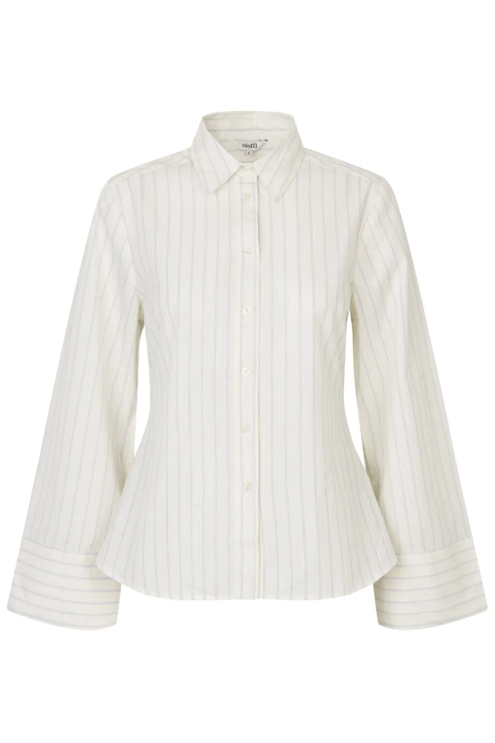 Stribet skjorte fra MbyM i 100% bomuld. De lyseblå striber kombineret med creme og hvidt giver skjorten et frisk udtryk.