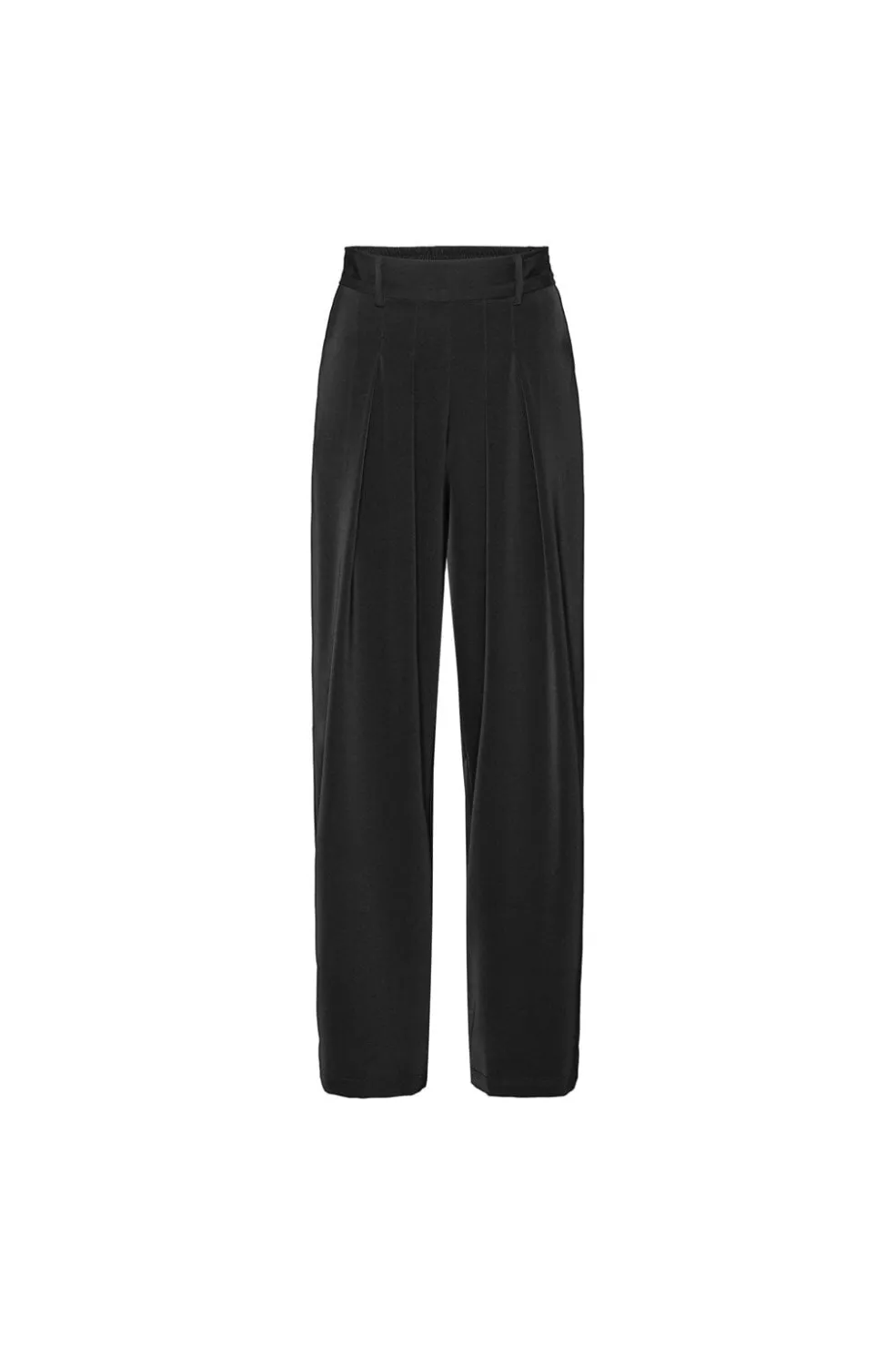 Sorte bukser fra Karmamia med høj talje og løs pasform. Bukserne har folder foran og går til midt på læggen, hvilket skaber et rent og enkelt udtryk.